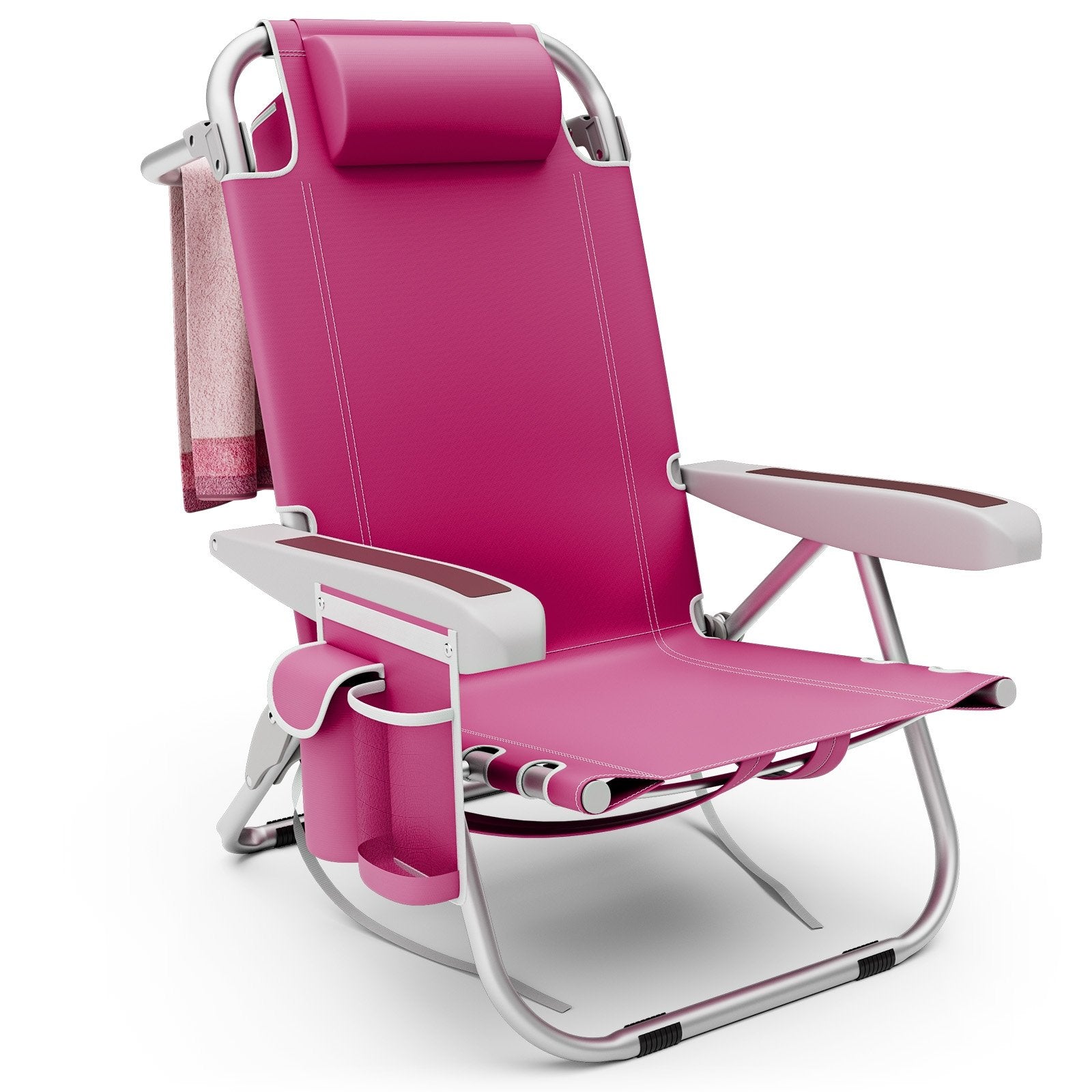 ● Adjustable Backrest and Padded Headrest: The 5-position adjustable backrest allows you to seamlessly transition from an upright position to a full recline for sunbathing. For added comfort the beach chair comes with a soft sponge-padded head pillow and armrests to pamper your head and arms while relaxing outdoors.