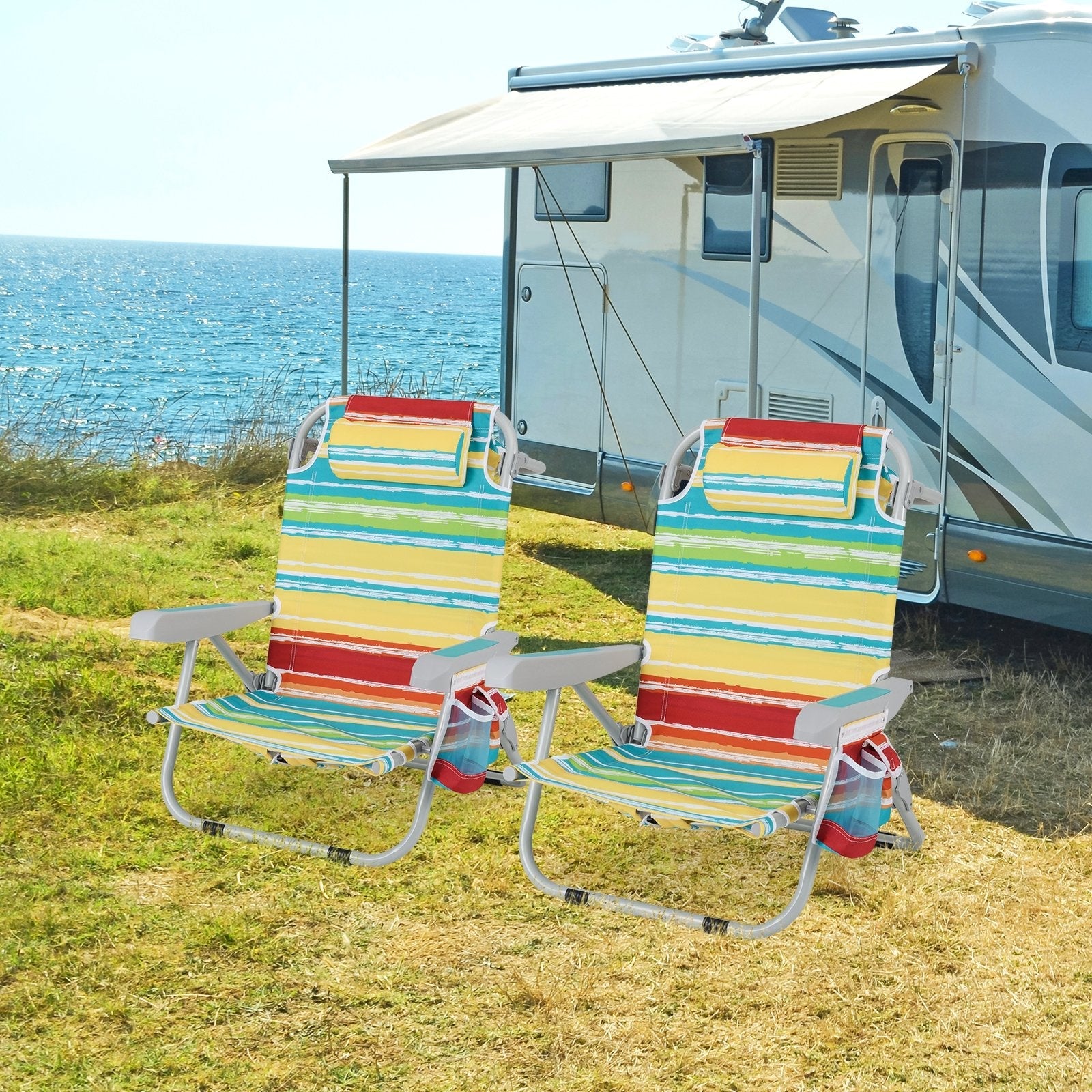 ● Wide Range of Application: Designed with a stylish striped pattern the portable beach chair will add a pop of style to your outdoor space making it a versatile choice for various outdoor activities such as camping fishing or picnicking.