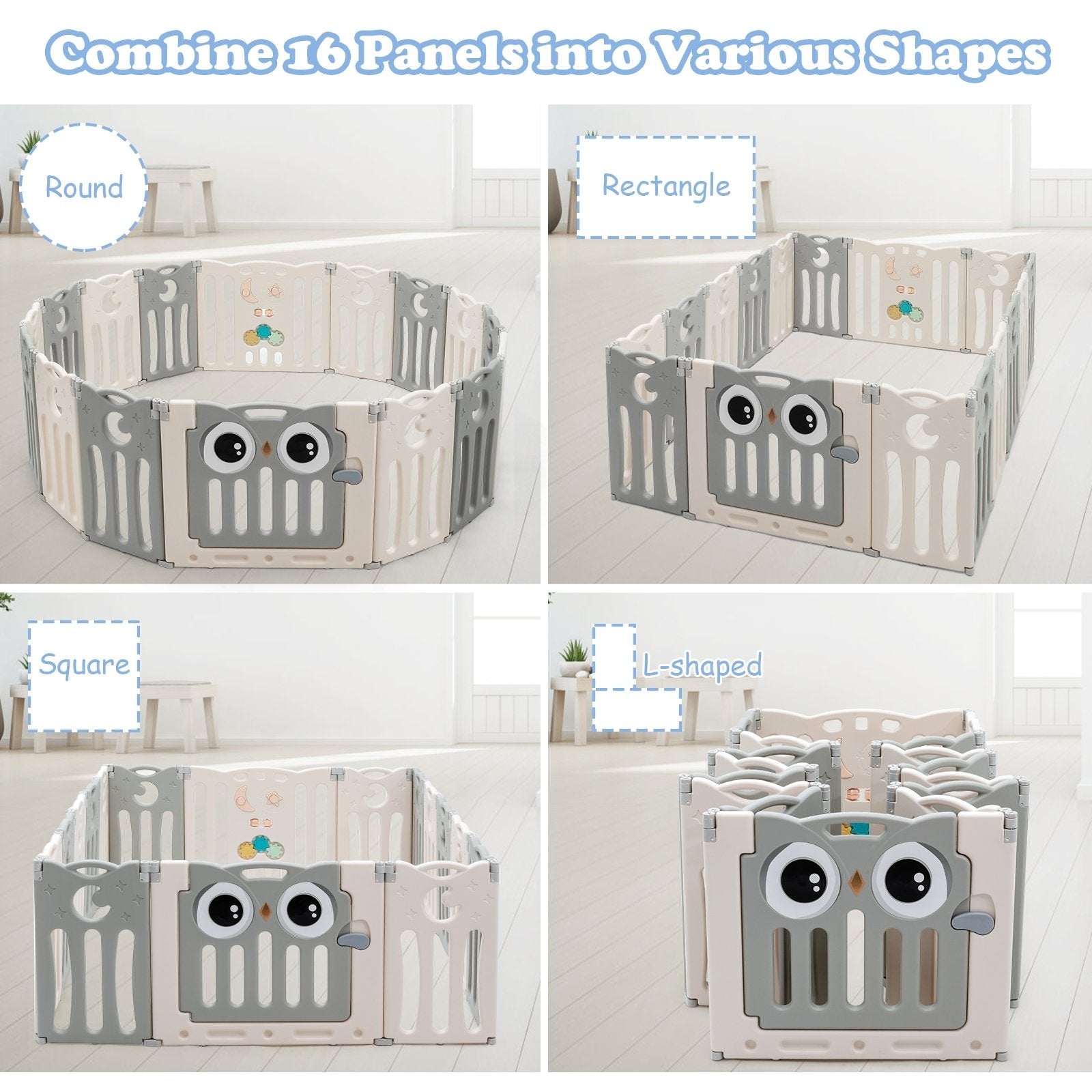 16-Panel Baby Activity Center Play Yard with Lock Door -Beige