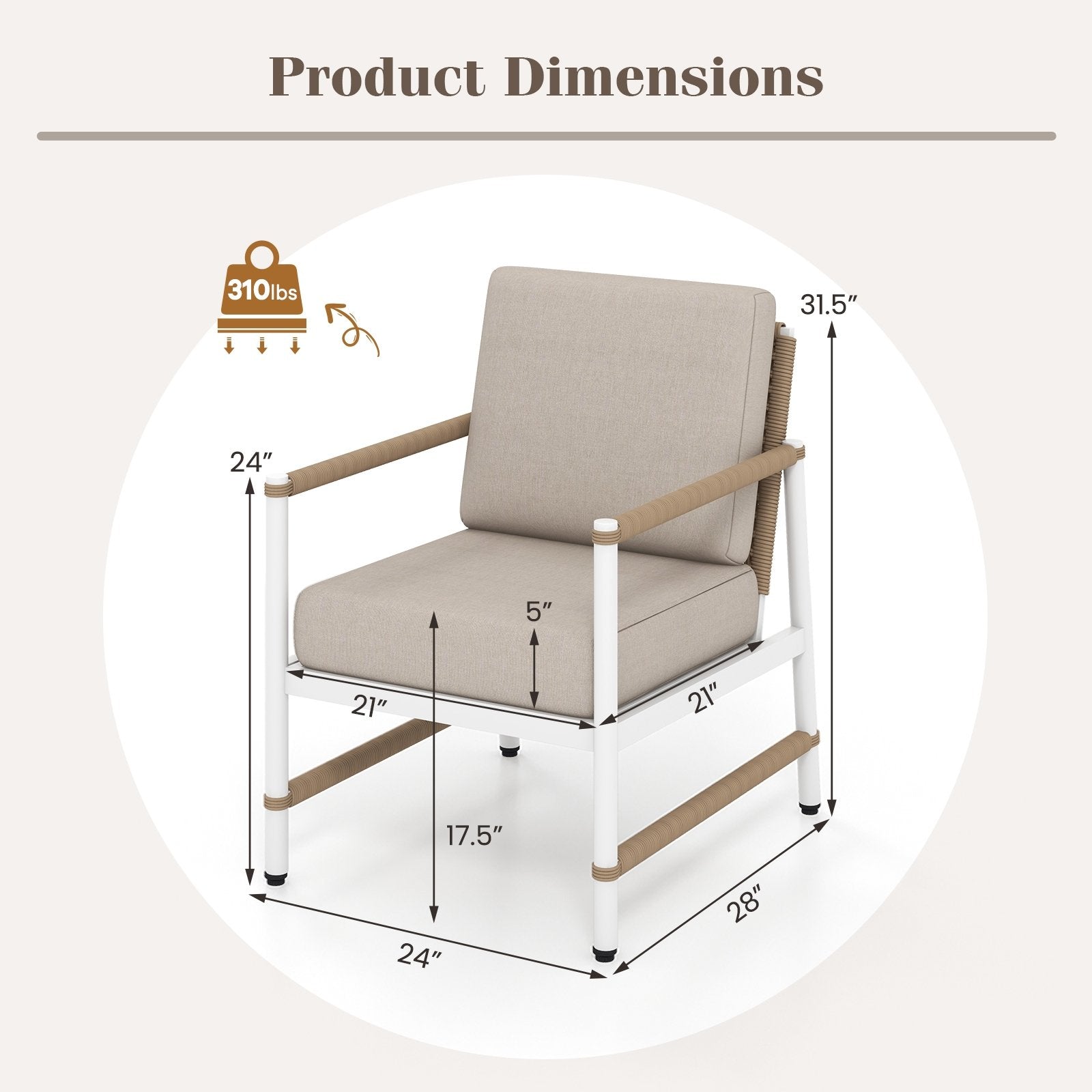 ● Easy Maintenance: The cushion covers with zippers are removable for separate cleaning. Note: Please avoid the cushions from rain exposure. Dimension of each sofa: 24" x28" x 31.5" (L x W x H).
