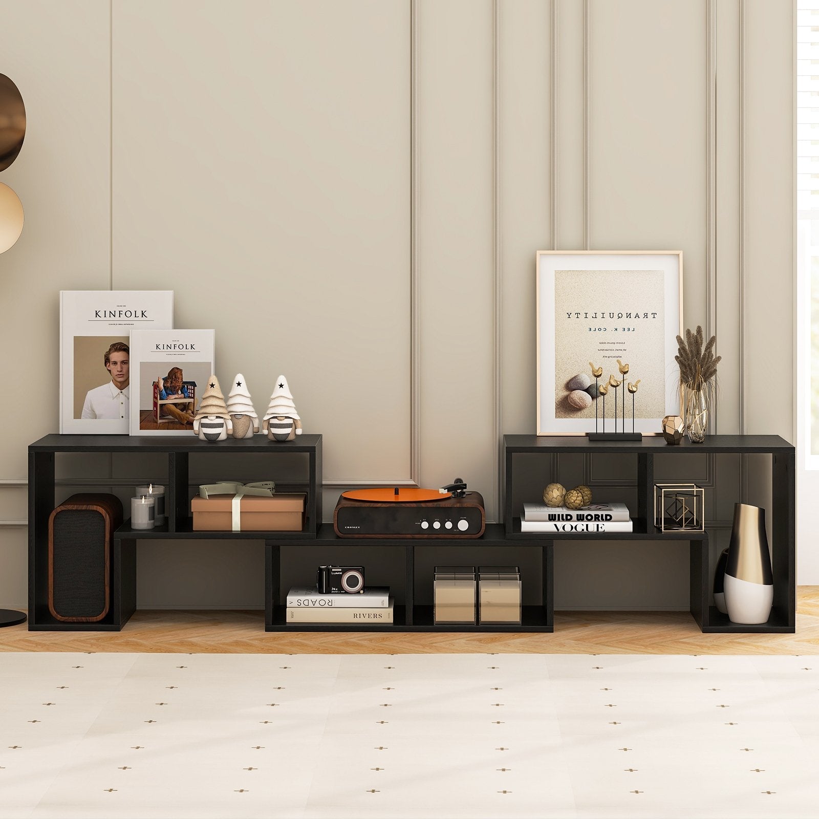● Spacious Open Storage Space: The multiple open storage cubes are designed with 6 open compartments to classify the storage space and keep things organized which add more storage space for items like the tv remote vase clock books and snack. The tabletop is roomy enough to expand from 53" - 67" to accommodate flat-screen TVs up to 65". The open design is perfect for showing and easy fetching.