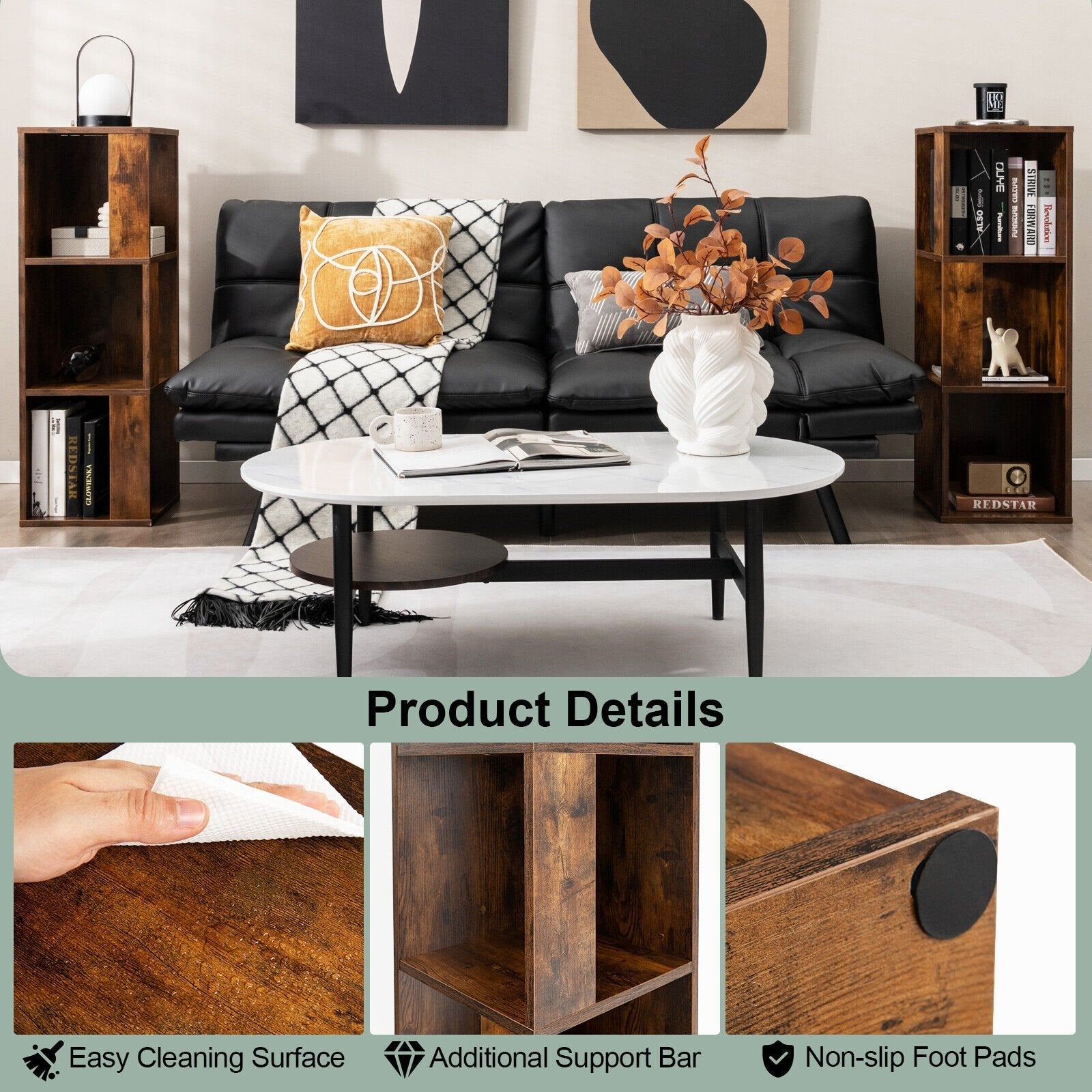3-Tier 6 Cube Freestanding Bookcase with Anti-toppling Device-Rustic Brown