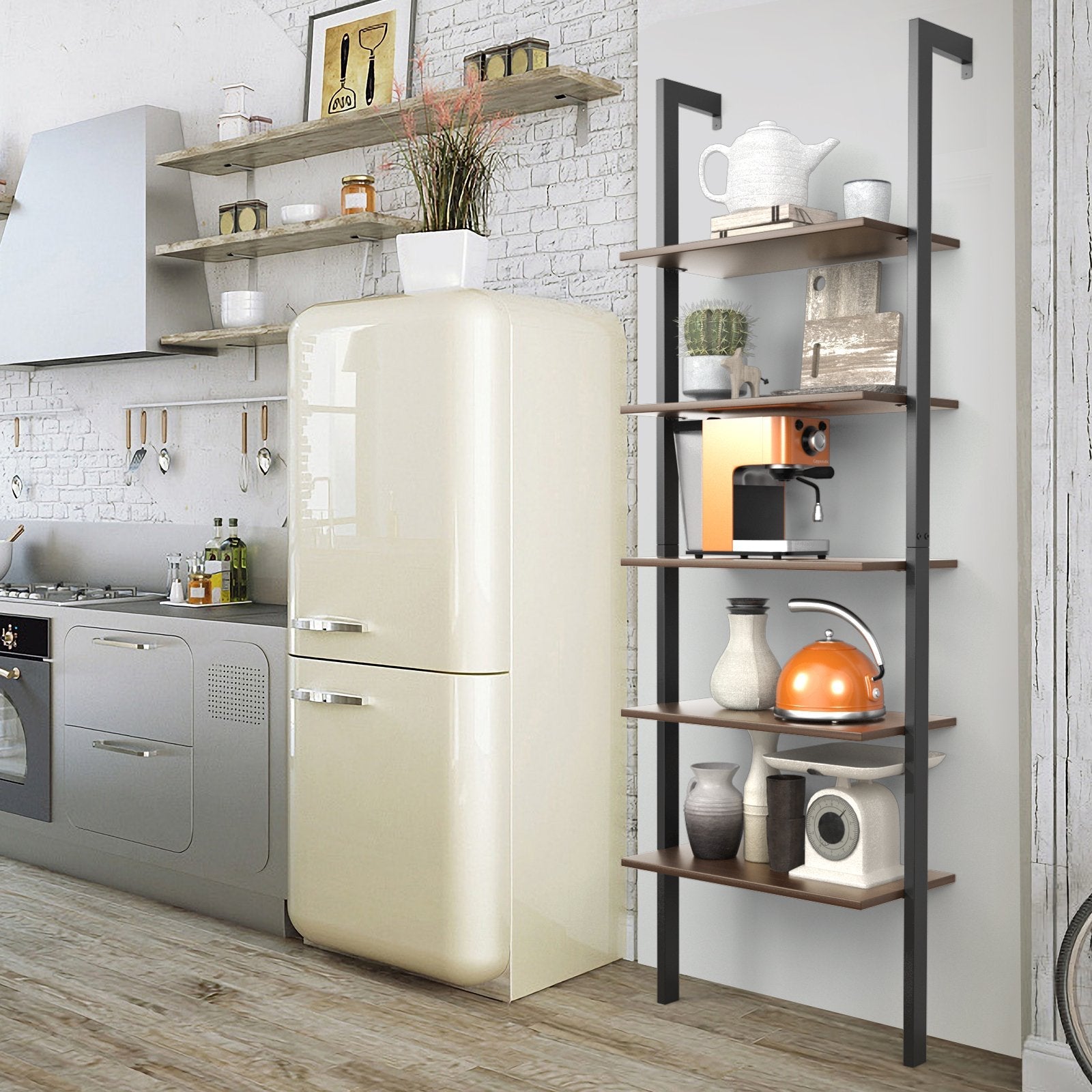 5-Tier Wood Look Ladder Shelf with Metal Frame for Home-Bronze