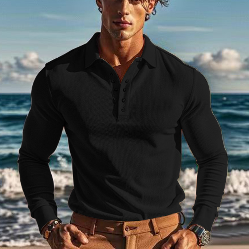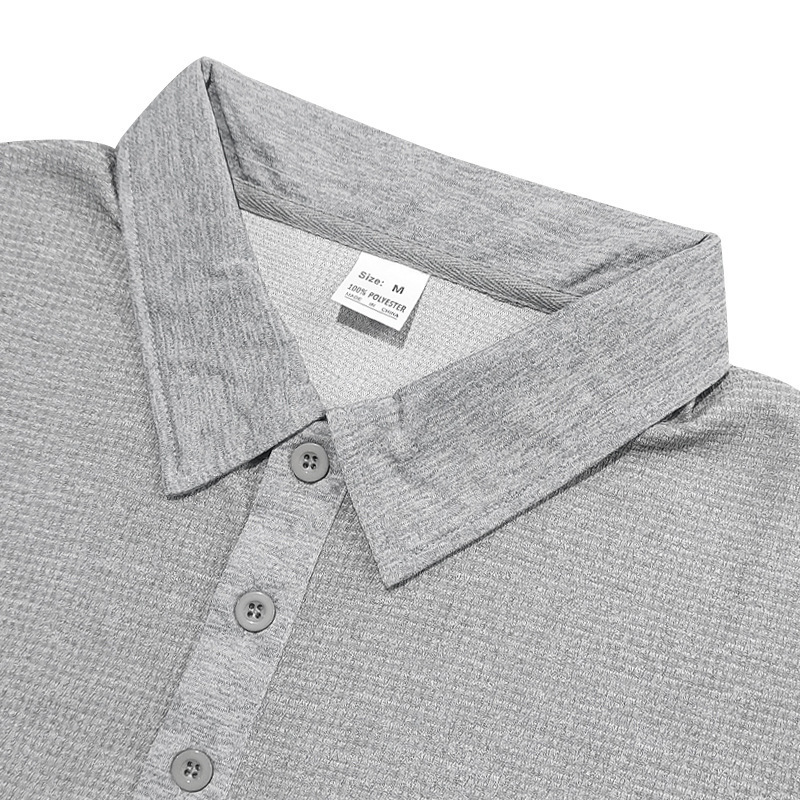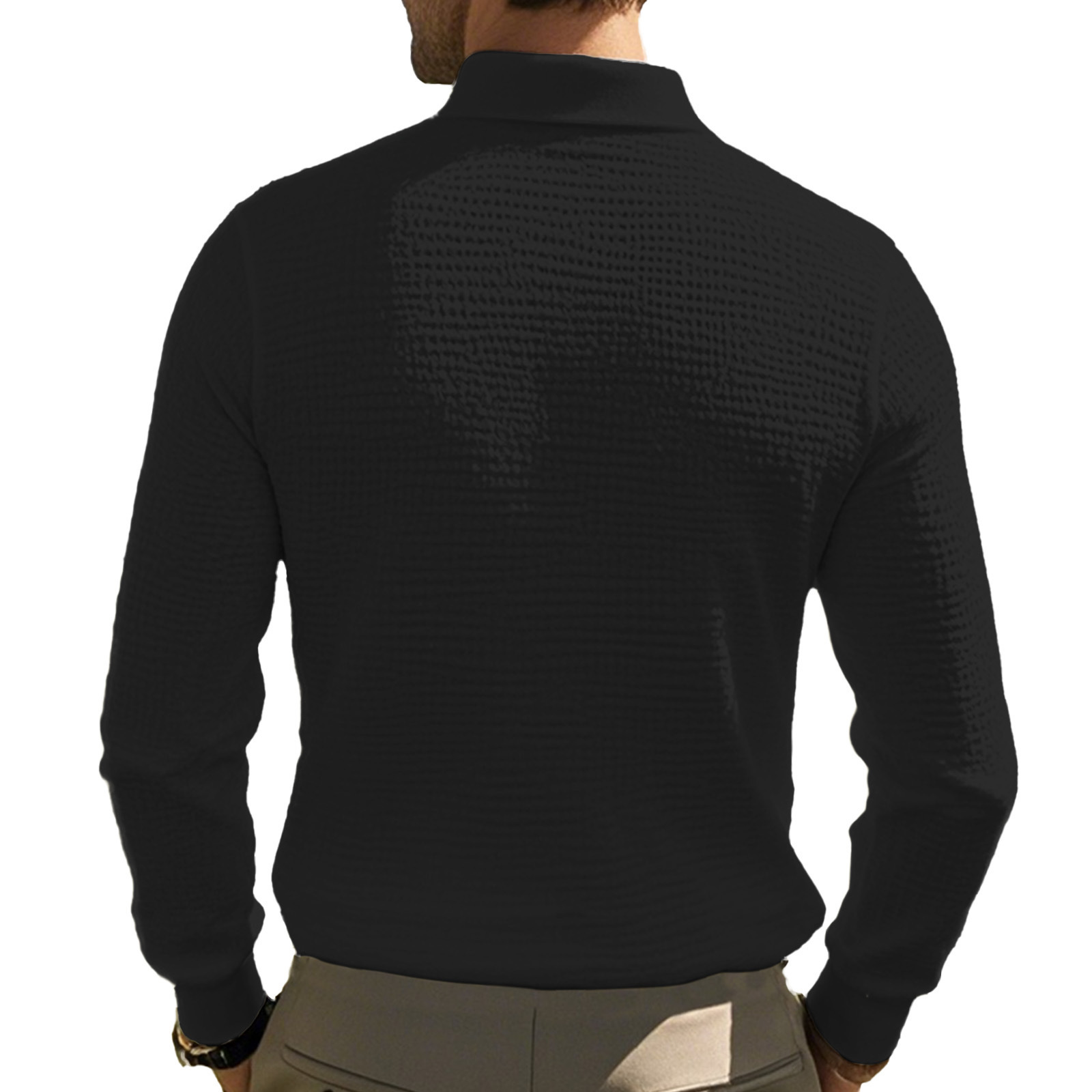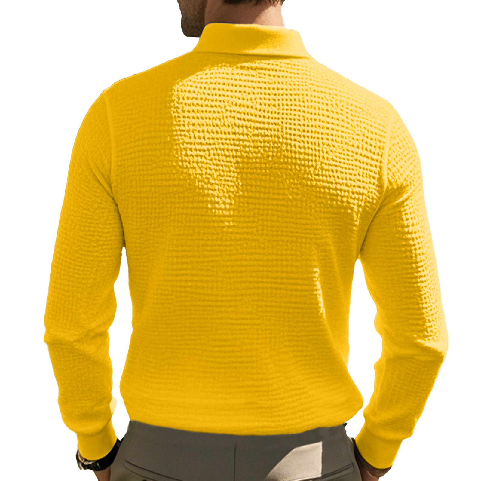 American Men's T-shirt Waffle Casual Polo Collar Button Slim-fit Long Sleeve