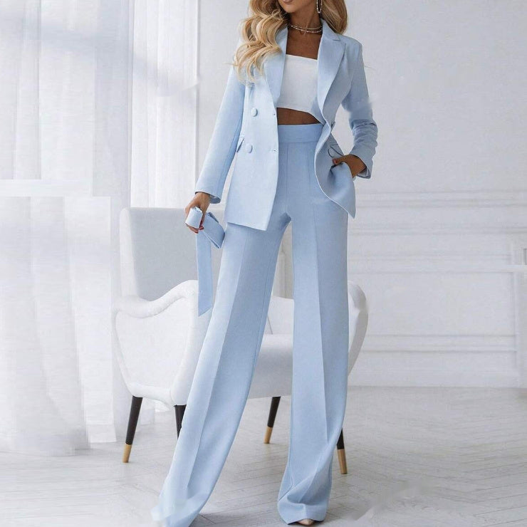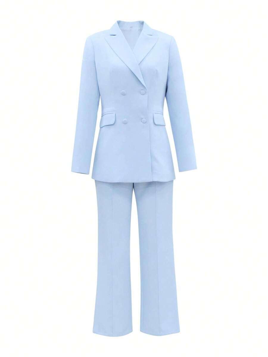 Autumn Solid Color Notched Lapel Double Breasted Pocket Set