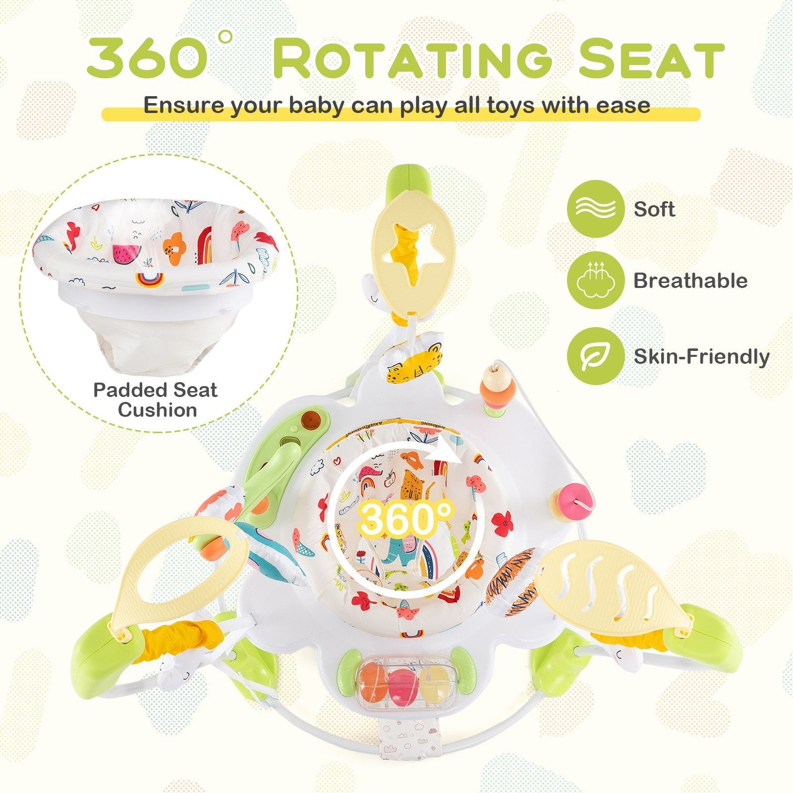 ● 360° Rotating Seat: The rotating seat provides your baby with the freedom to explore their surroundings from every angle and allows for easy access to interactive toys encouraging motor skills development. Product dimension: 34.5" x 34.5" x 37"/87 cm x 87 cm x 94 cm (L x W x H). Seat diameter: 13.5"/34 cm.