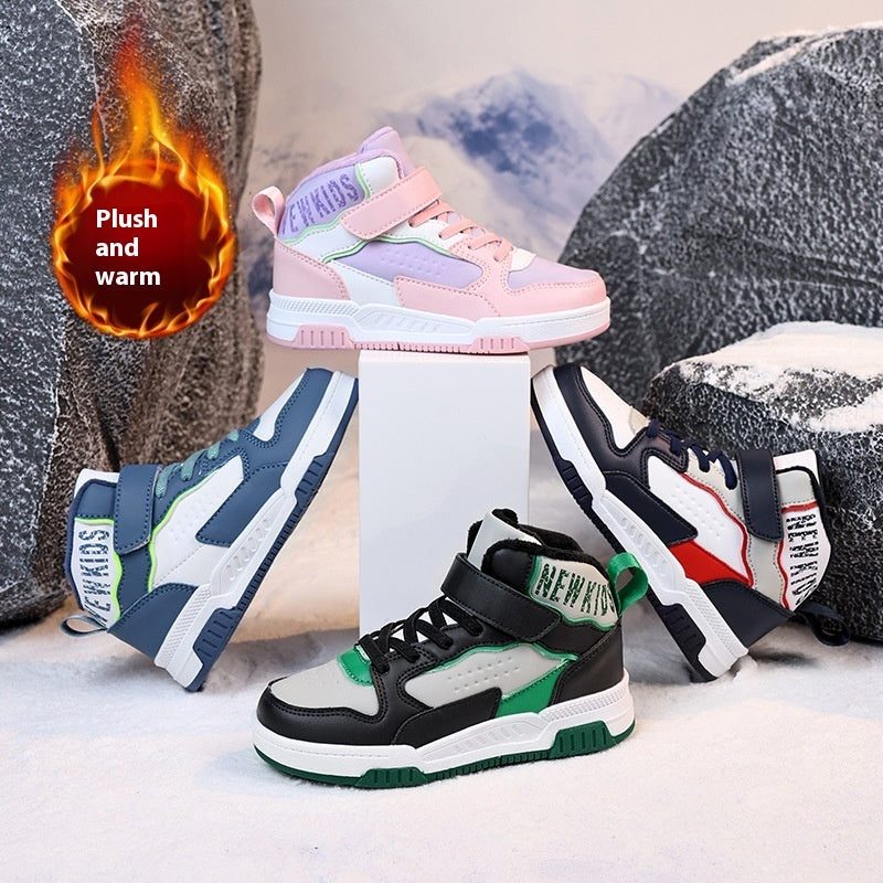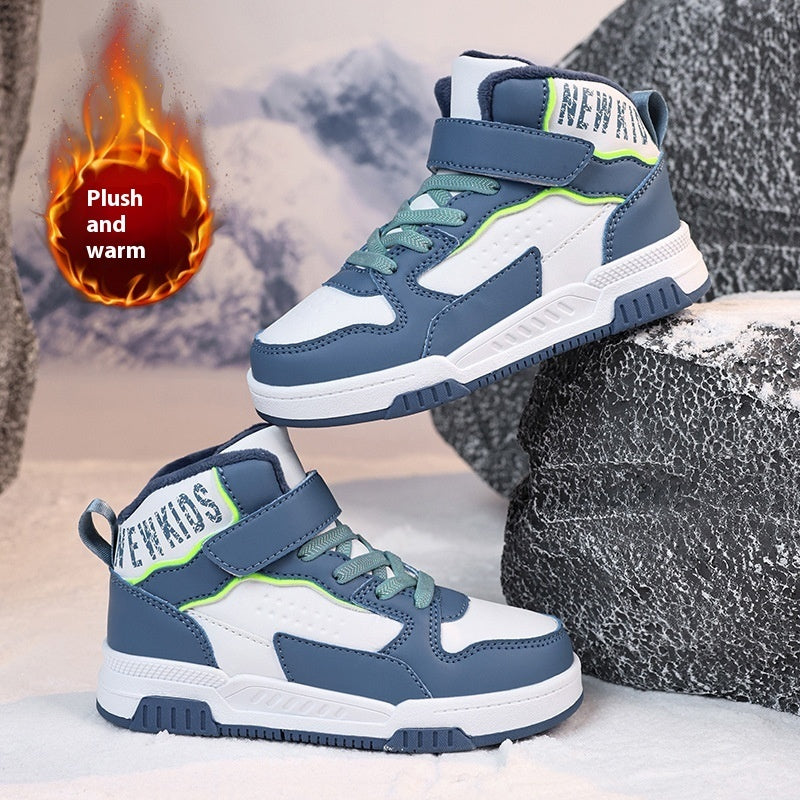Casual Leather Sports Board Shoes High-top Velvet Thermal