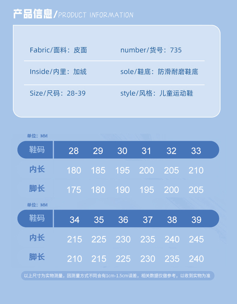 Sole material: non-slip wear-resistant sole