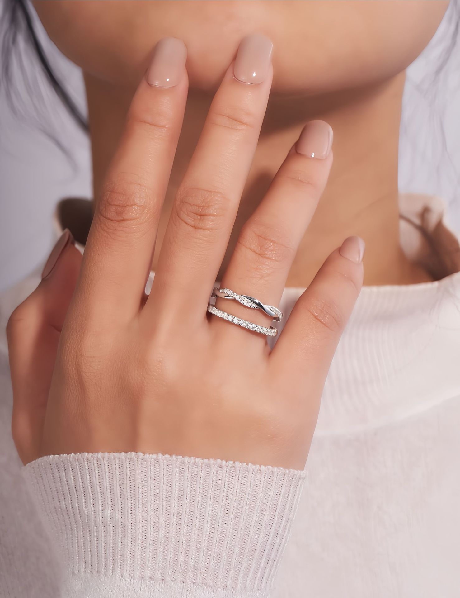 Classic Sansheng Sanshi Couple Rings Twist Twisted String Zircon Lines