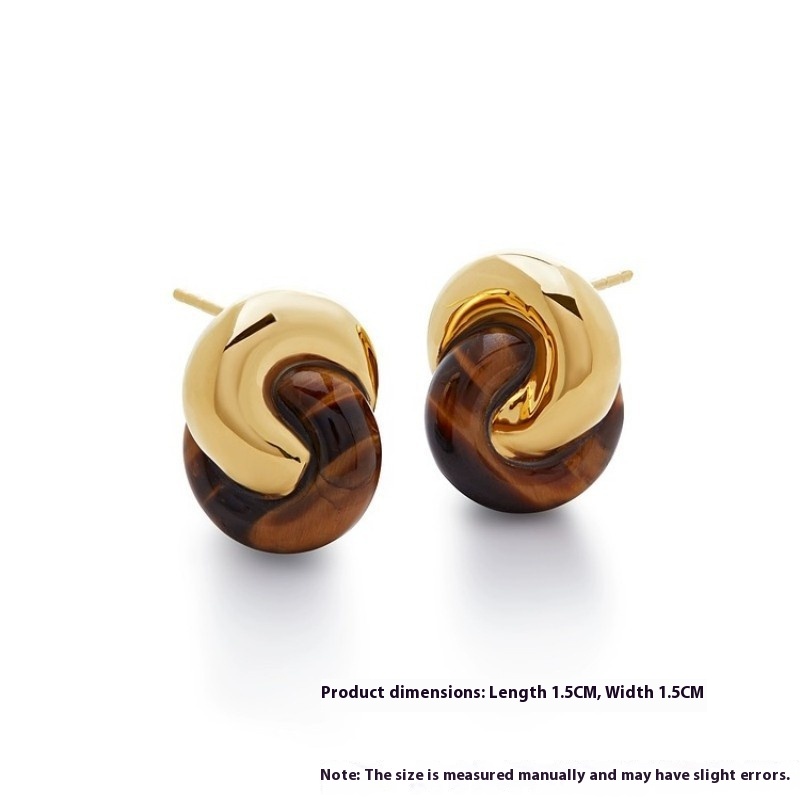 Co-branded Tiger Eye Stone Ring Buckle Retro Earrings