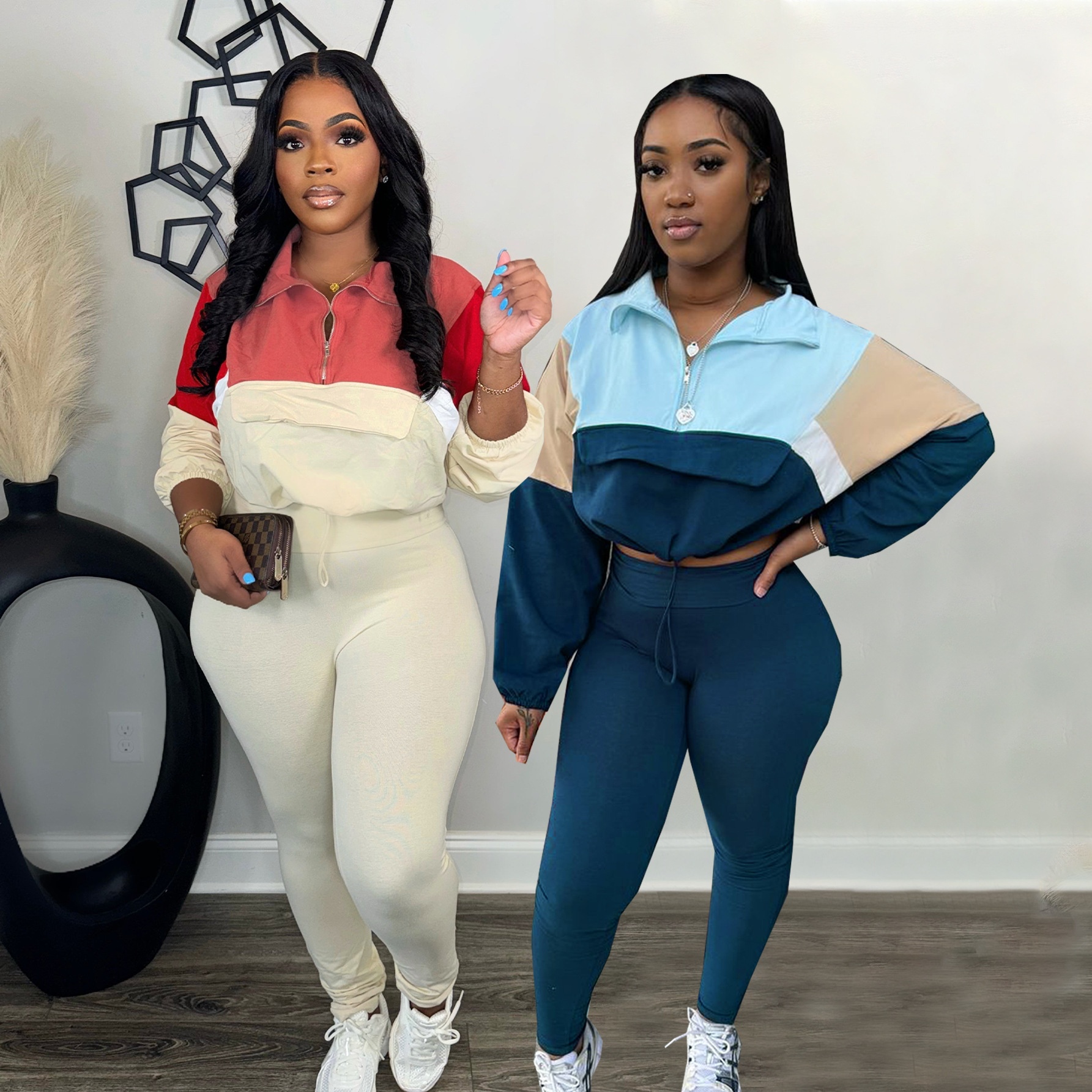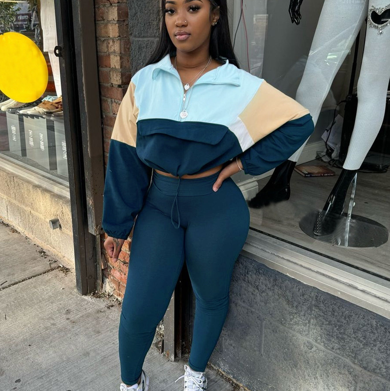 Contrast Color Suit Zipper Multicolor Hoodie Tights