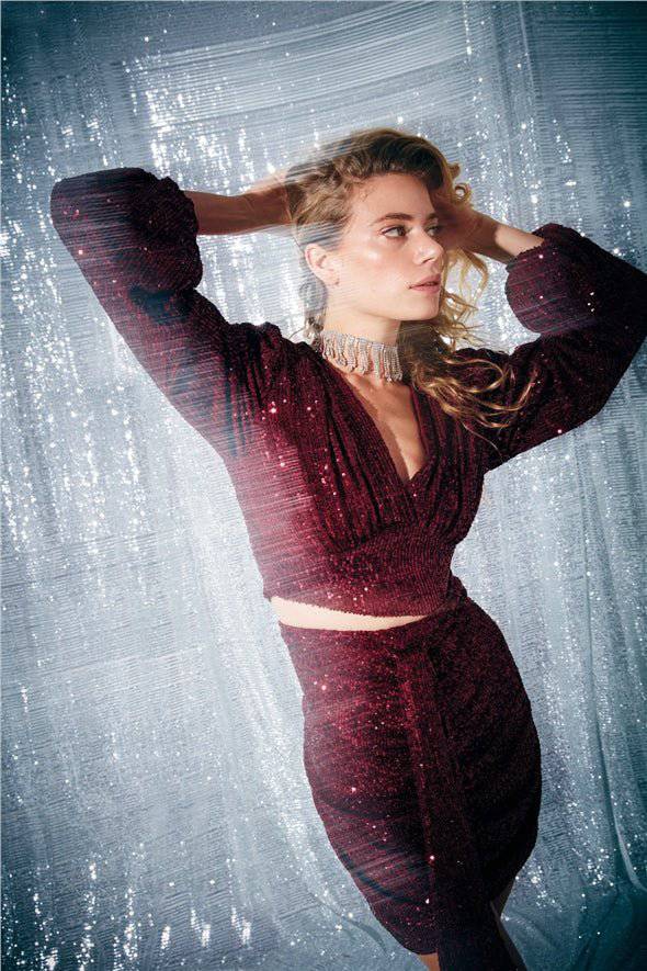 Elevate your style this holiday season with this fashionable Double Breasted Sequined Wrap Crop Blouse in Red! Look fresh and fearless for all your holiday festivities!
