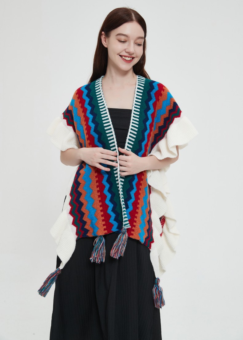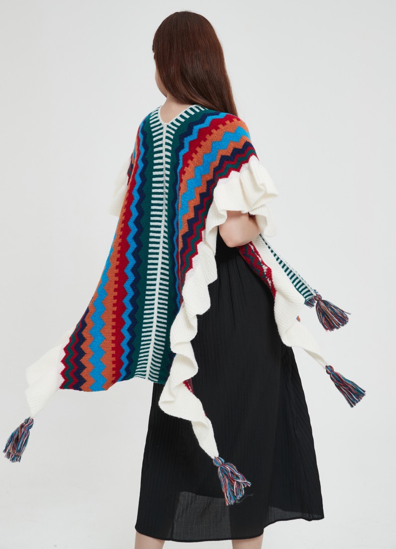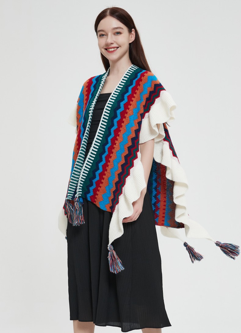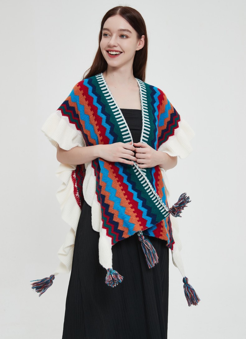 European And American Spring Autumn And Winter Ladies Travel Ethnic Style Ruffled Knitted Shawl