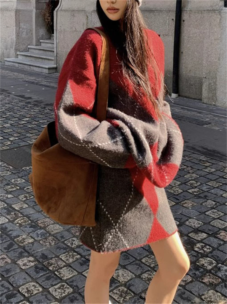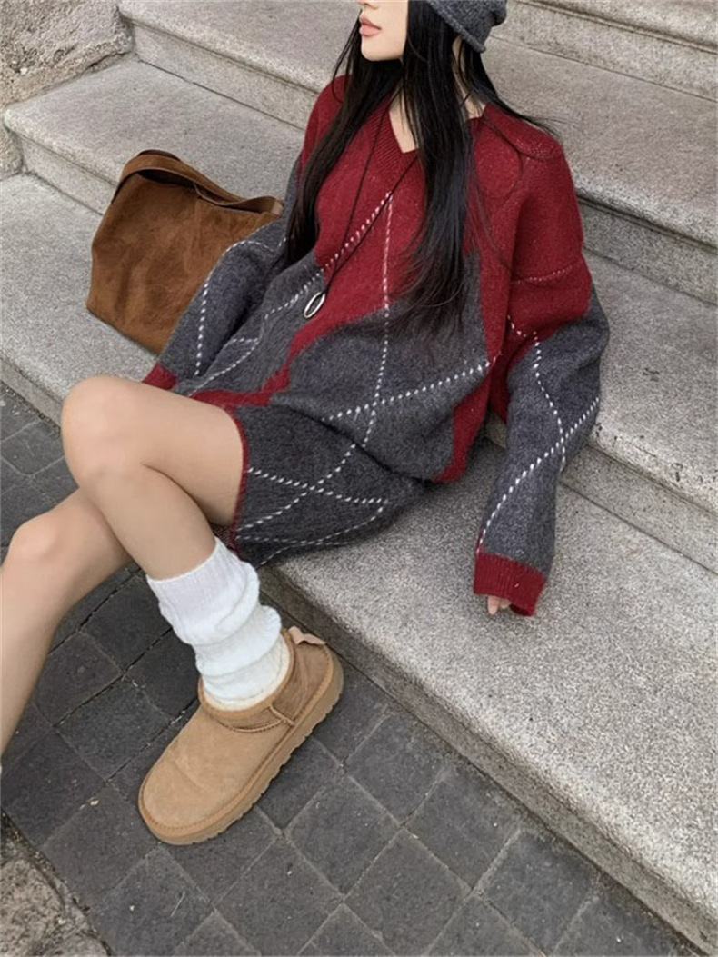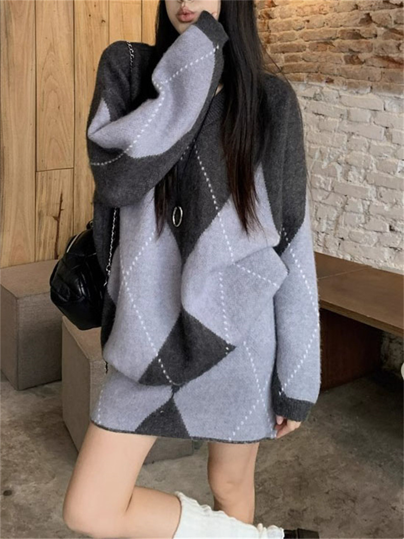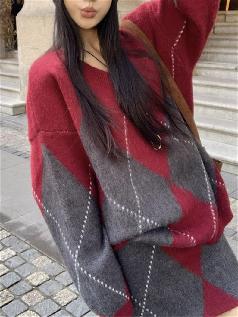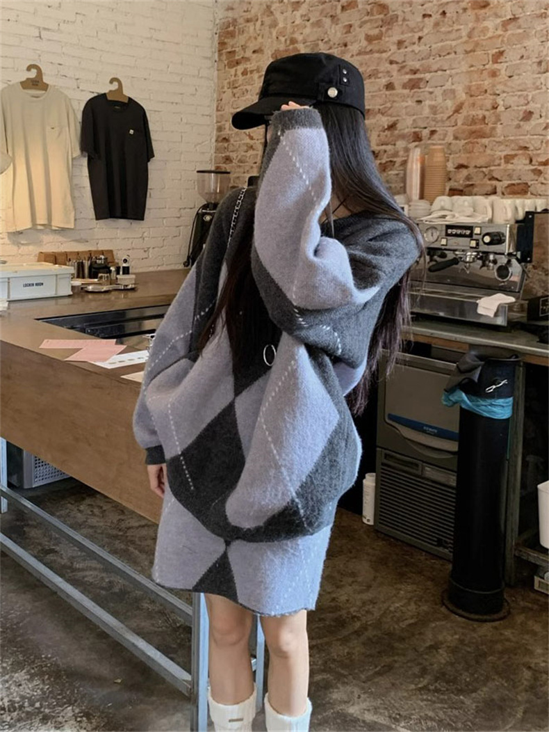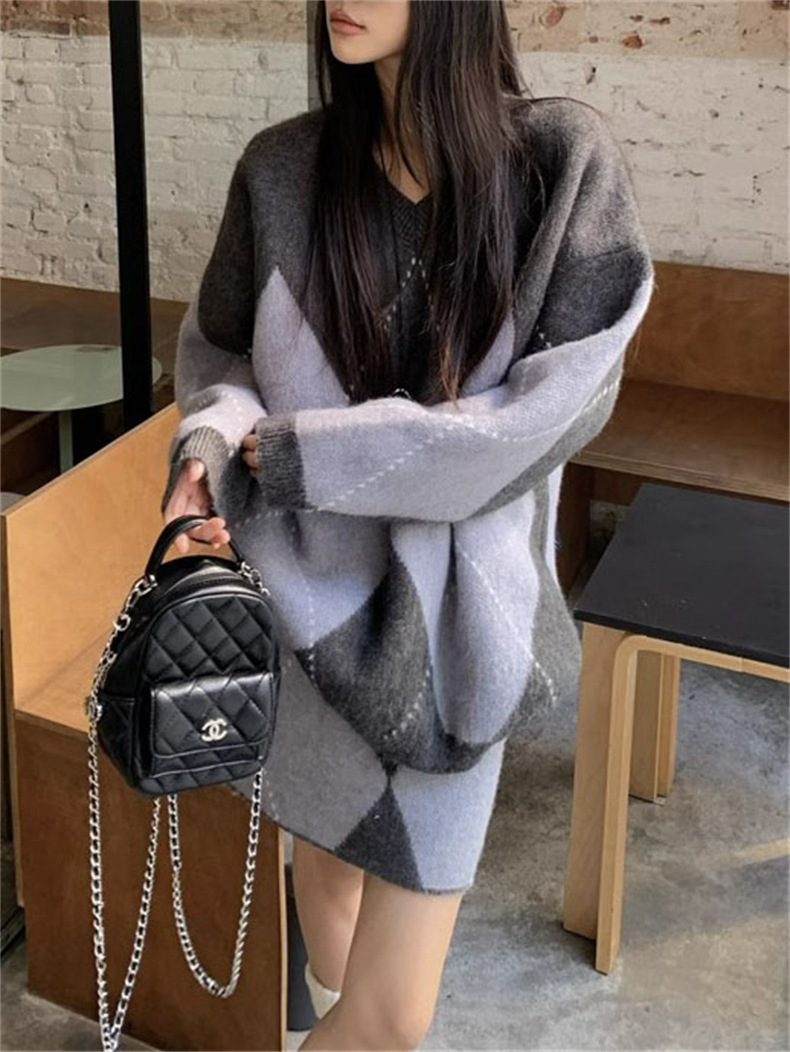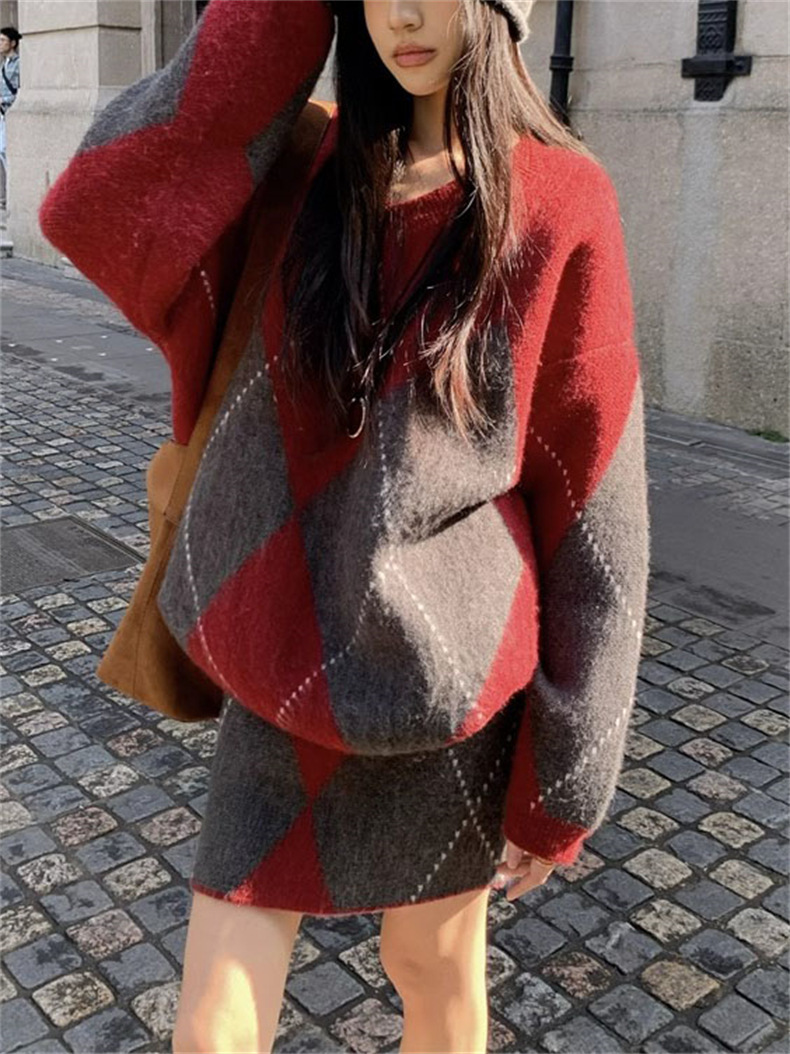 Fashionable Knitted A- Line Short Skirt Two-piece Set For Women