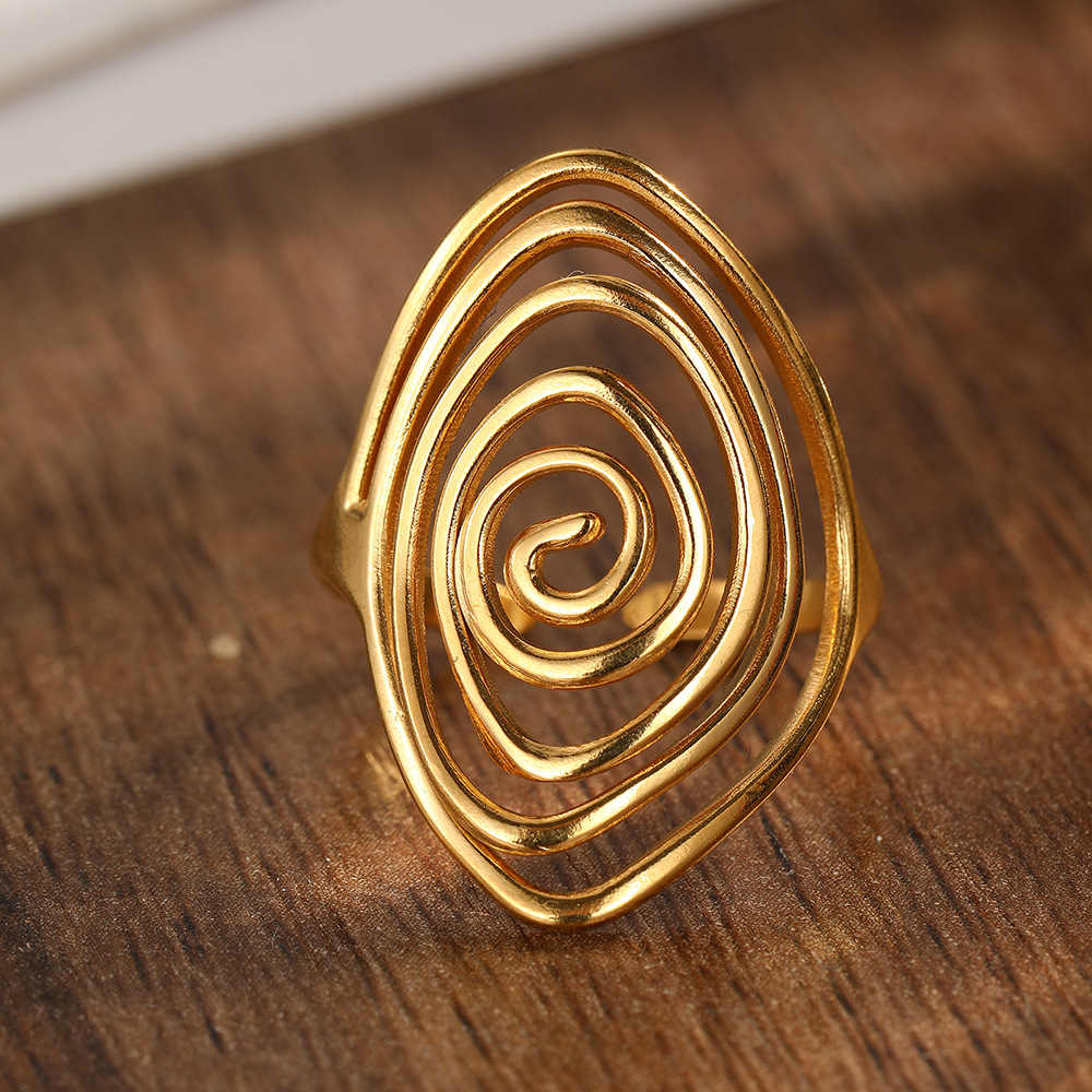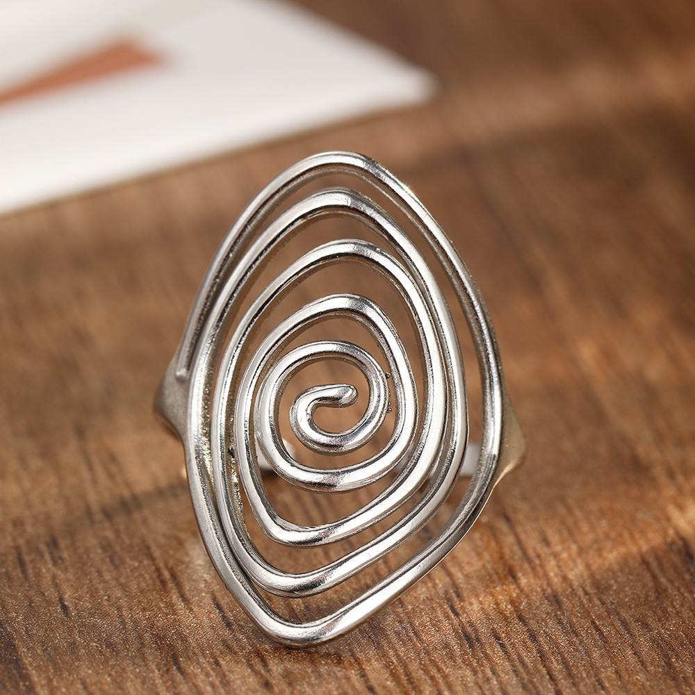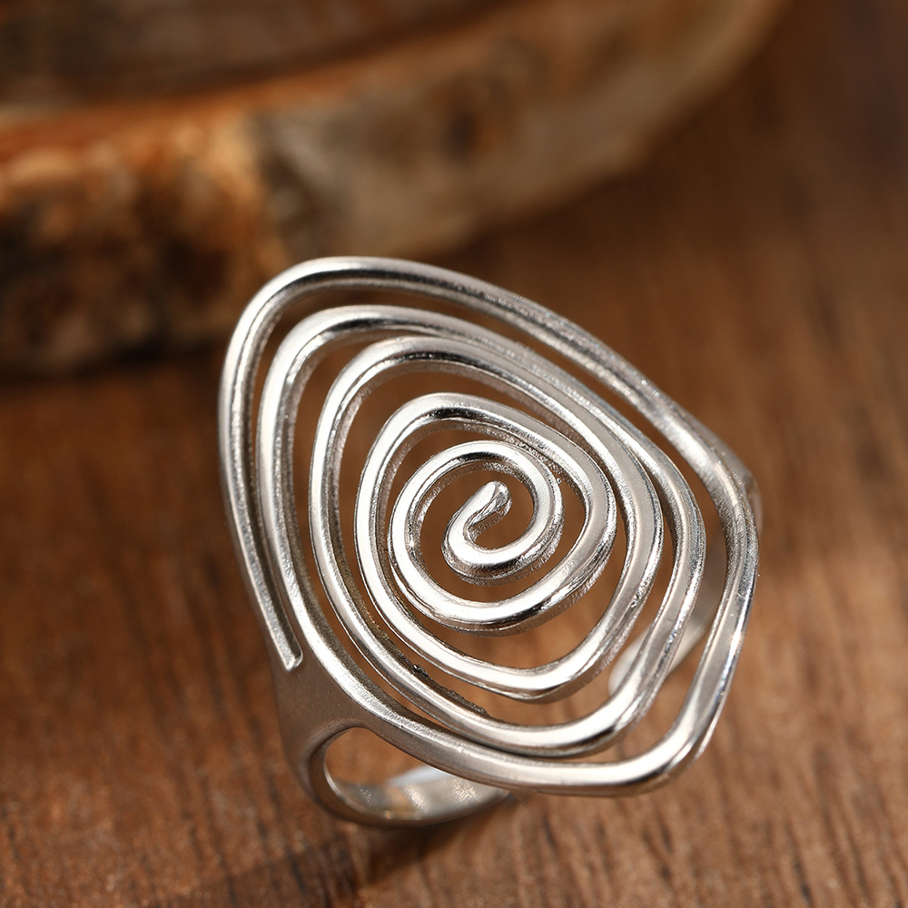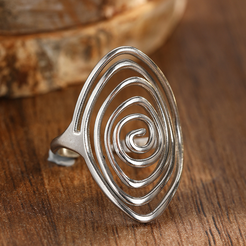 Geometric Spiral Laid Open Ring For Men And Women Retro High Sense