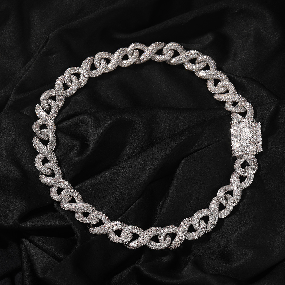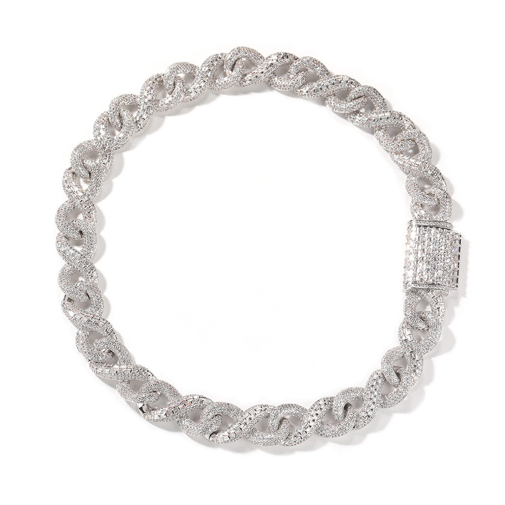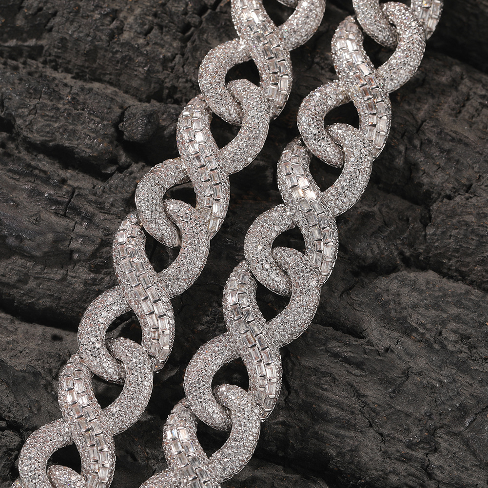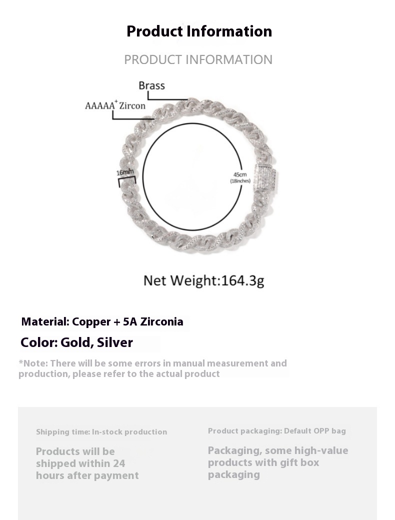 Hip Hop Necklace Silver Mixed Inlaid Zircon Personality High Sense Ornament