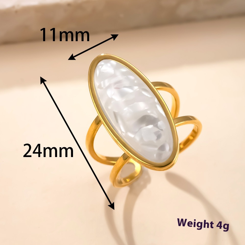 Hydraulic Oval Natural Stone Stainless Steel Ring Simple