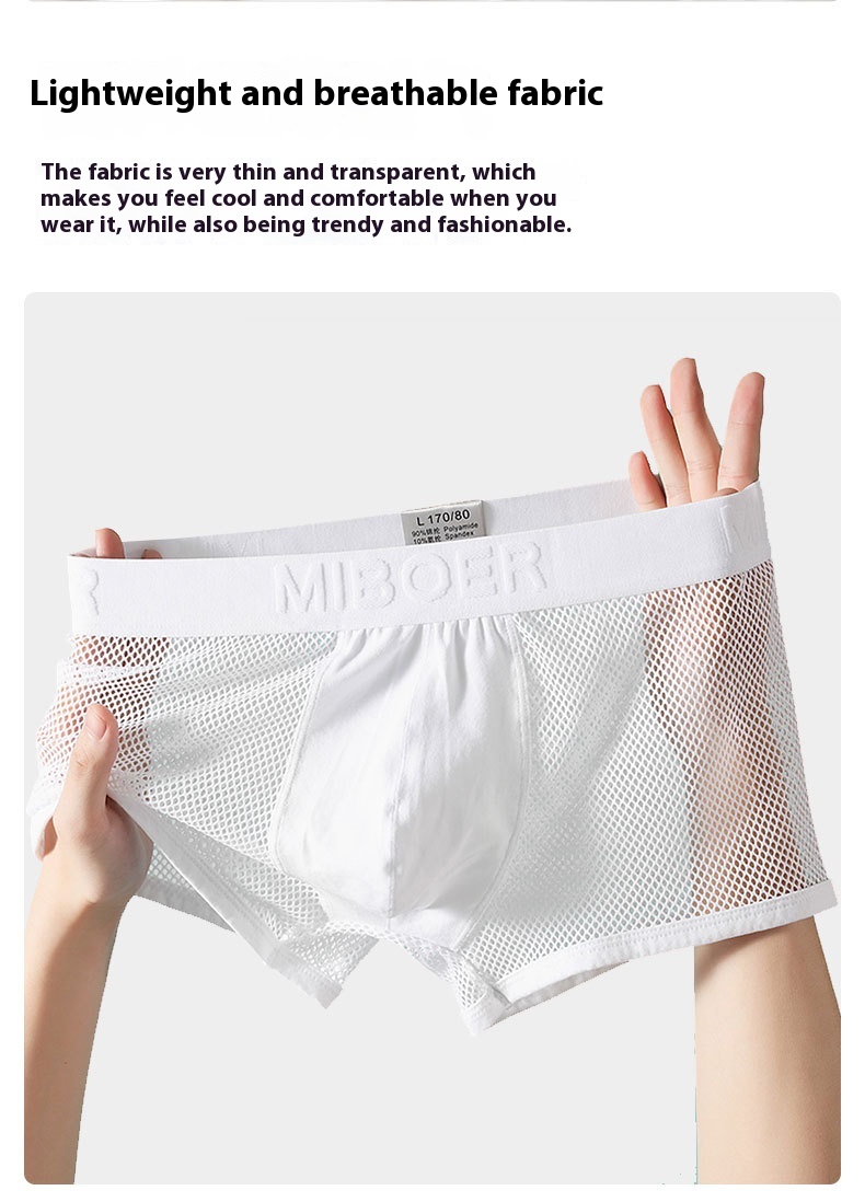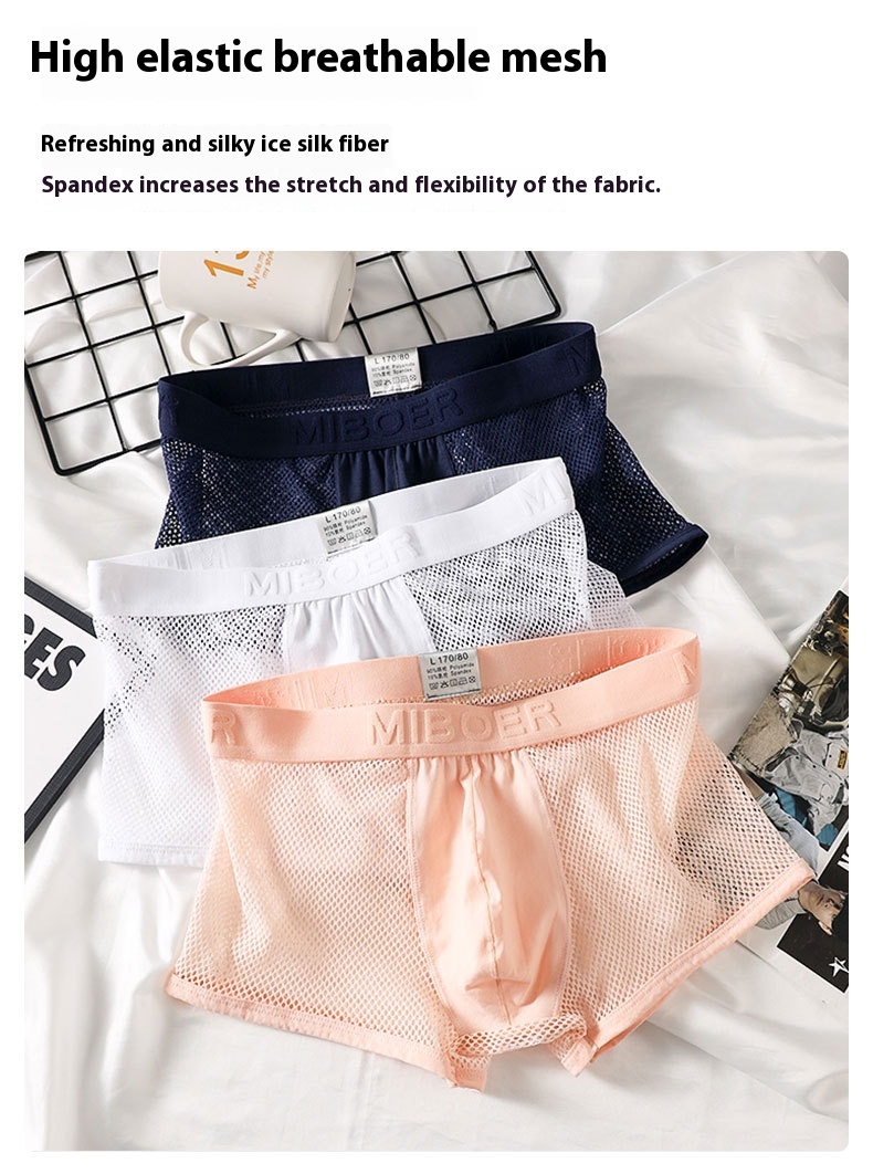 Ice Silk High Elastic Mesh Underwear Thin Cotton Crotch Boxers