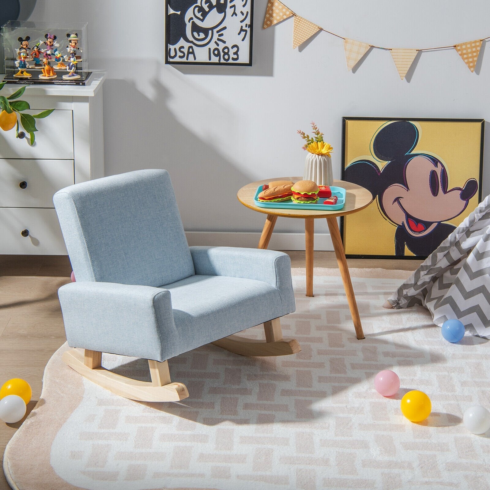 Kids Rocking Chair with Solid Wood Legs-Blue