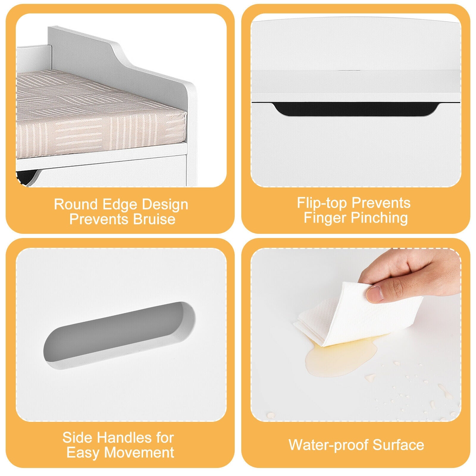 ● Safety-hinged Lid: This toy chest for kids includes a safety-hinged lid that opens easily and closes in a gradual way. This design not only promotes durability but also protects children's fragile fingers from getting pinched for enhanced safety. The rounded corners can effectively prevent accidental collisions and scratches.