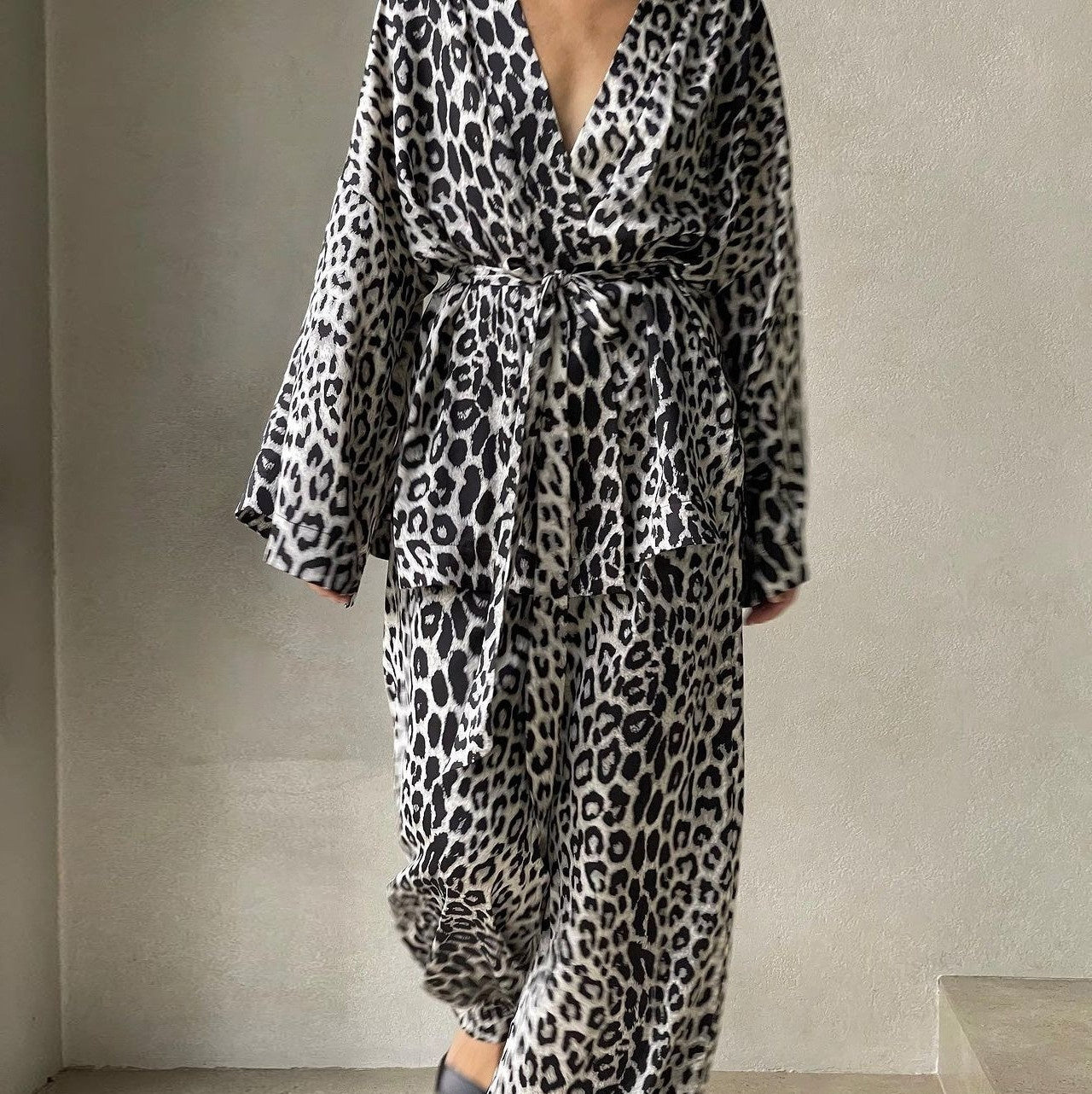 Long Sleeve V-neck Top Wide Leg Pants Suit Loose