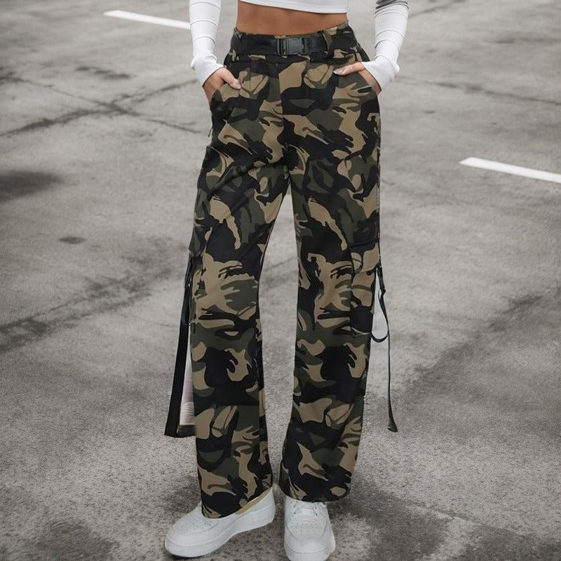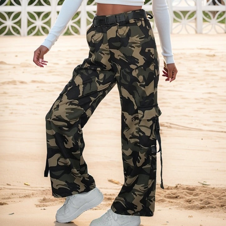 Multi-pocket Lace-up Loose Street Straight-leg Trousers
