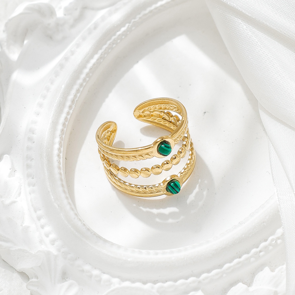 Natural Stone Multi-layer Open Ring Advanced Stainless Steel Ring