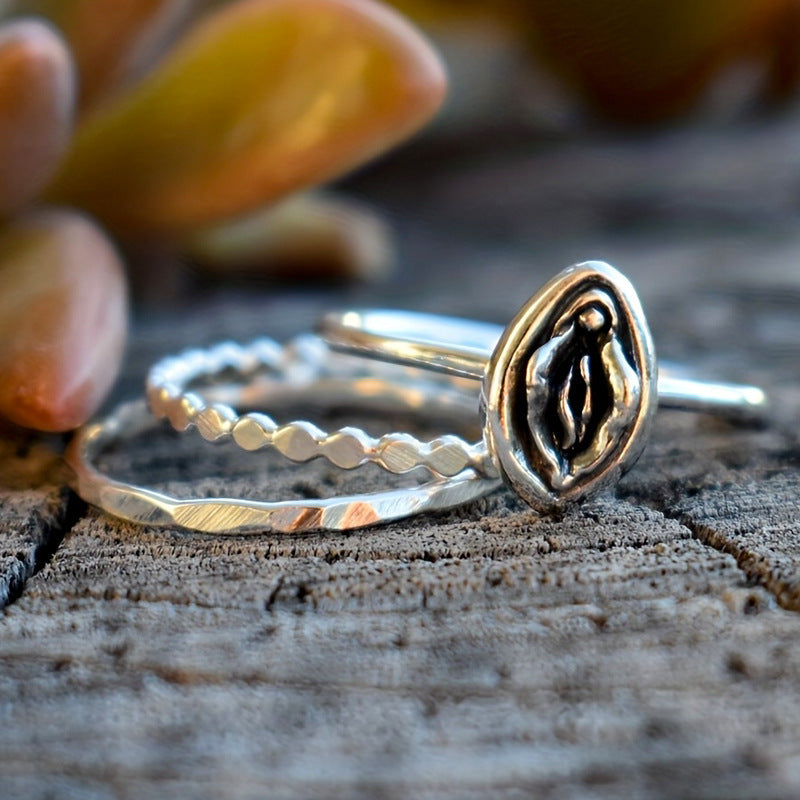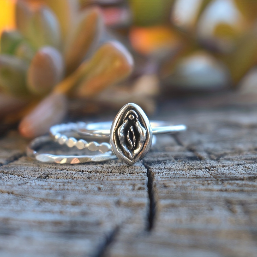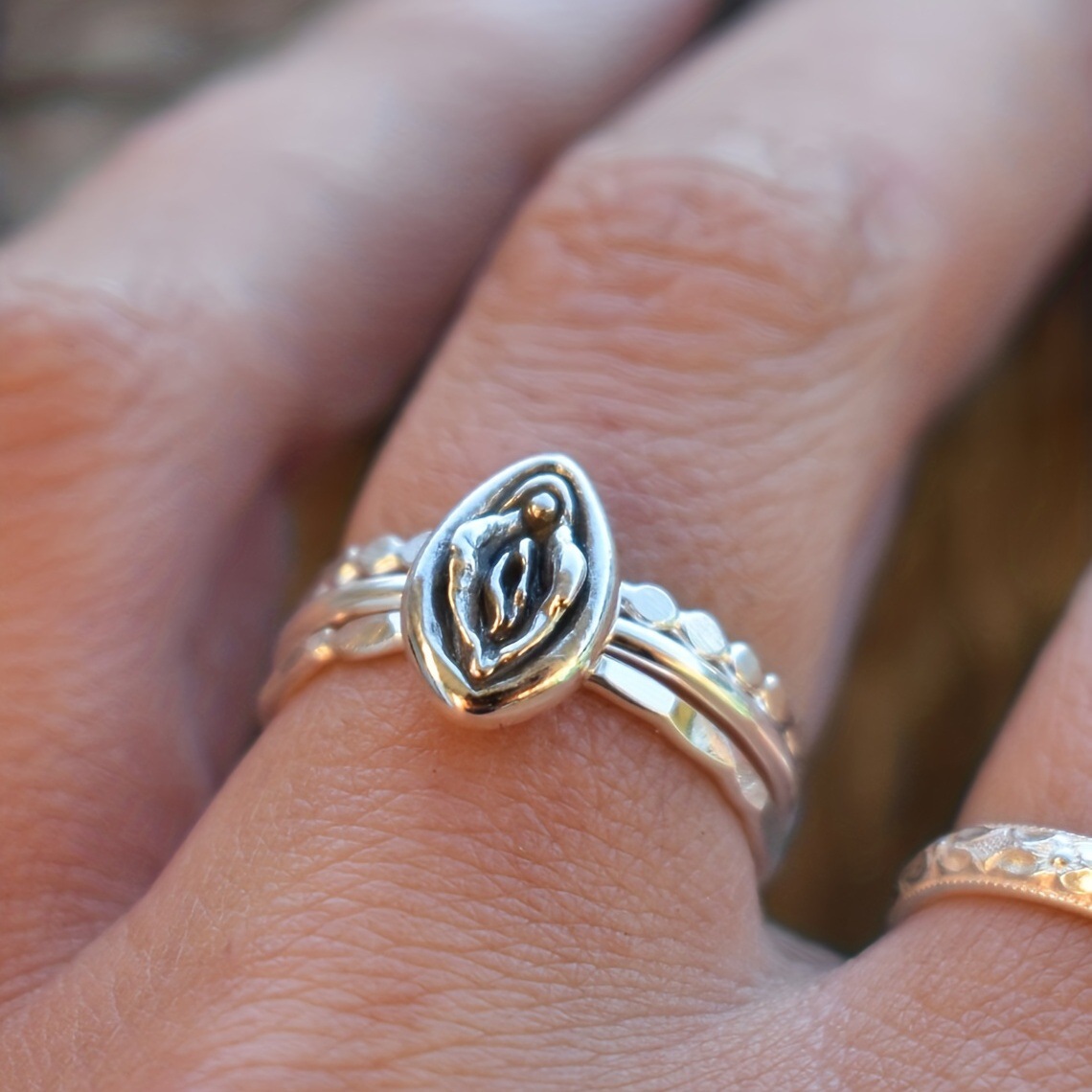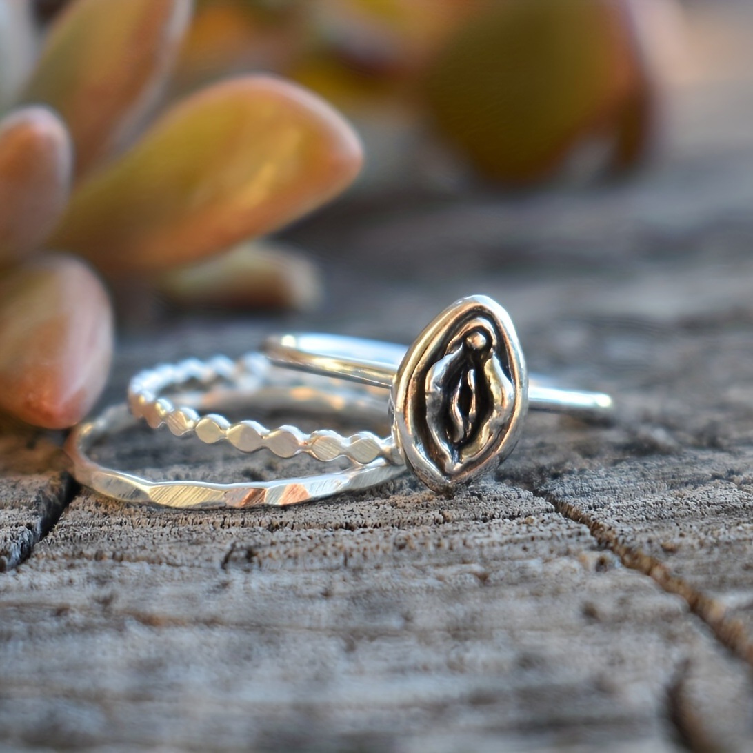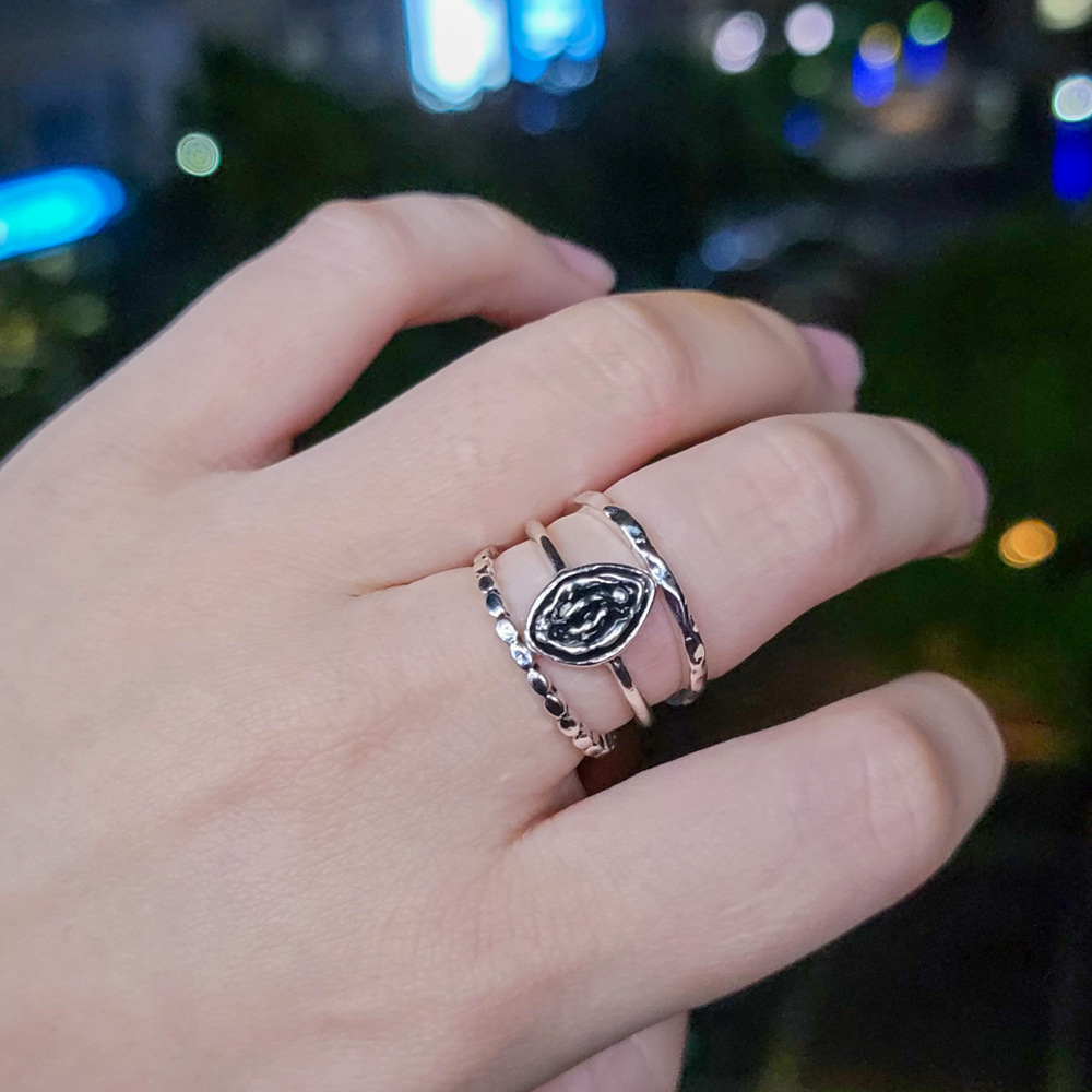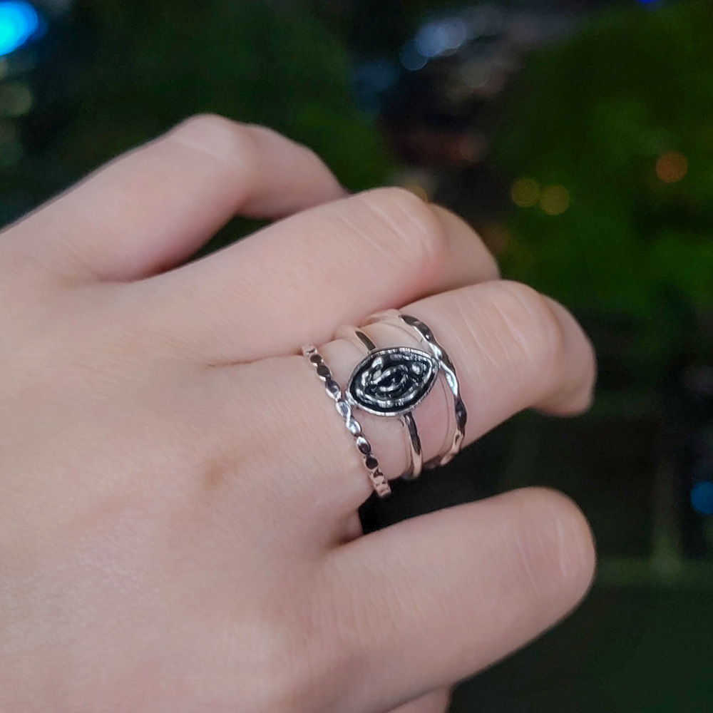 New Eyes Black Flower Feminist Declaration Of Independence Ring Three-piece Set