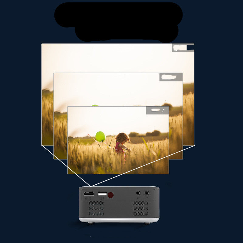 Accessories include: projector host *1 + power cord *1 + AV cable *1 + remote control *1 + manual *1 + packing box *1