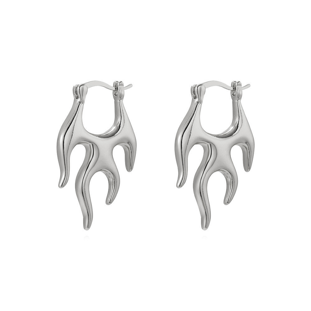 Personality Flame Ear Clip Exaggerated Metallic Earrings High Sense