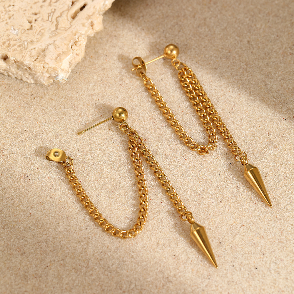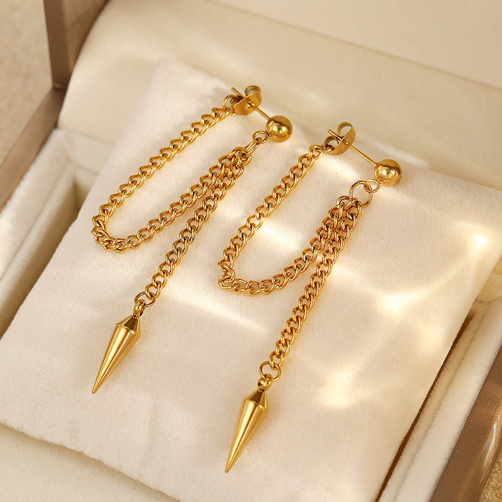 Personalized Long Ear Studs Simple Rivet Chain Cold Style