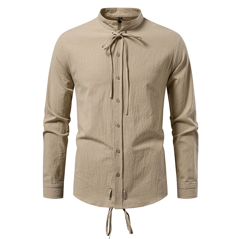 Pirate Drawstring Men's Cotton And Linen Long Sleeve European Size Shirt