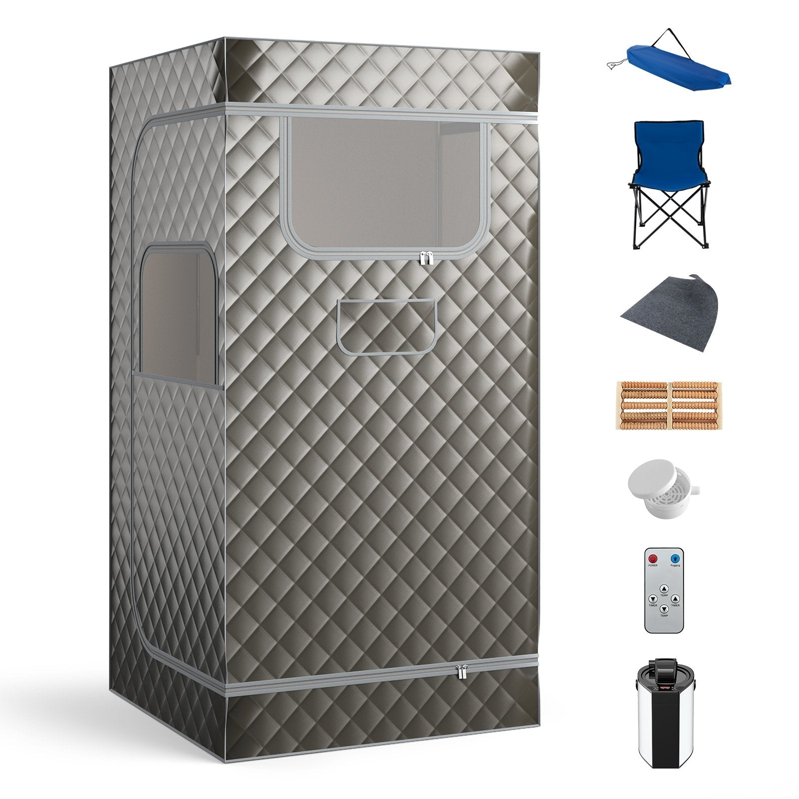 Portable Steam Sauna with 3L Steam Generator Remote Control Wood Foot Massager and Foldable Chair for Home-Black