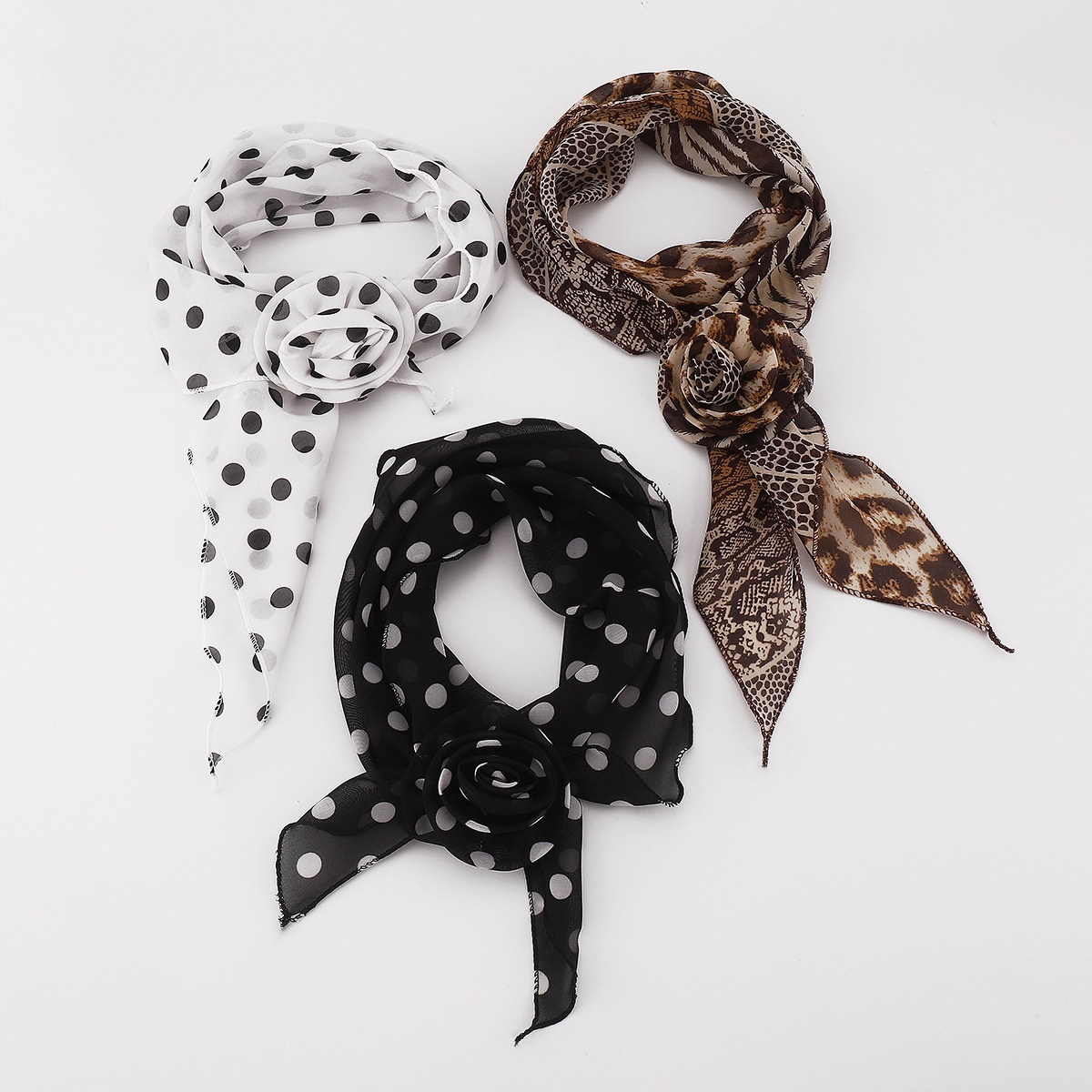 Silk Scarf Strip High-grade Leopard Print Polka Dot Rose