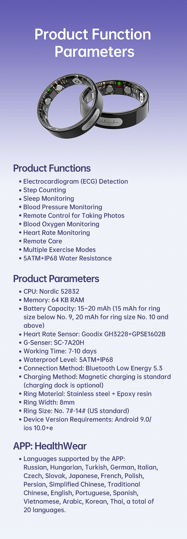 Packing List: Ring, magnetic charging cable, instruction, packing box