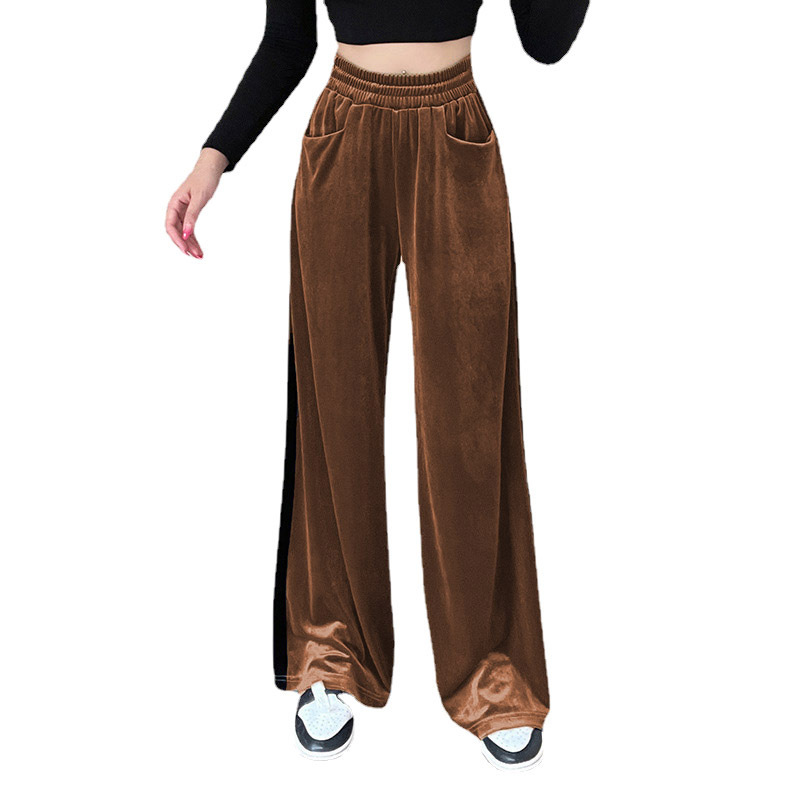 Suede Waist Versatile Drape Splicing Straight-leg Overalls Casual Pants