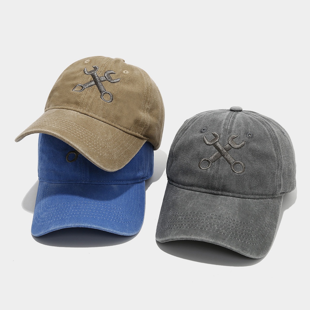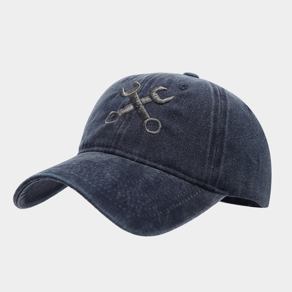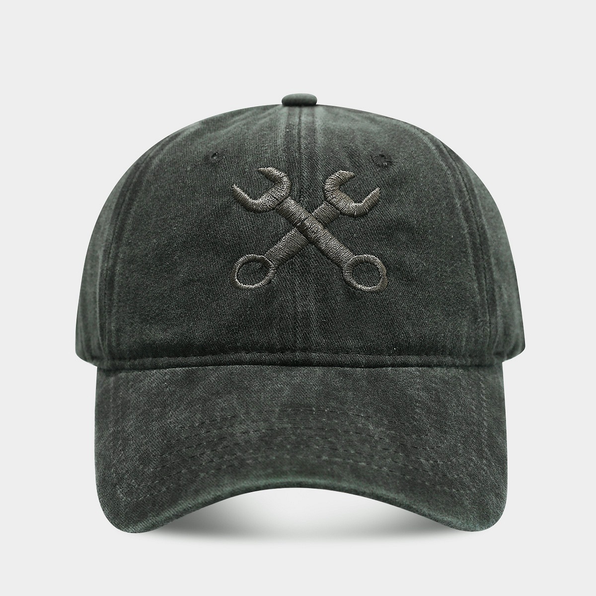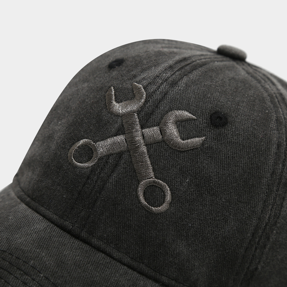 Vintage Distressed Wrench Repairman Hat Soft Top Breathable Washed Peaked Cap