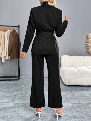Women's Fashion Elegant Lady Solid Color Belt Sets Western Suit