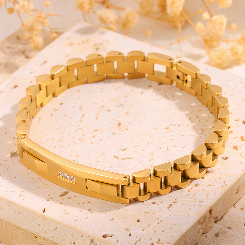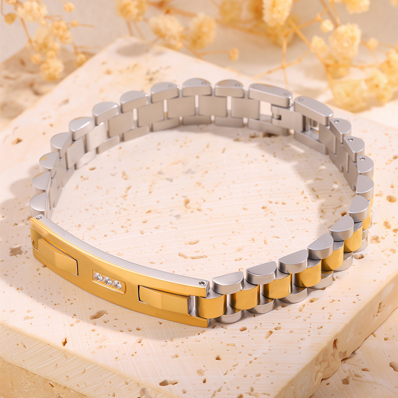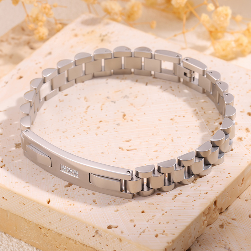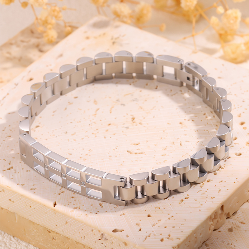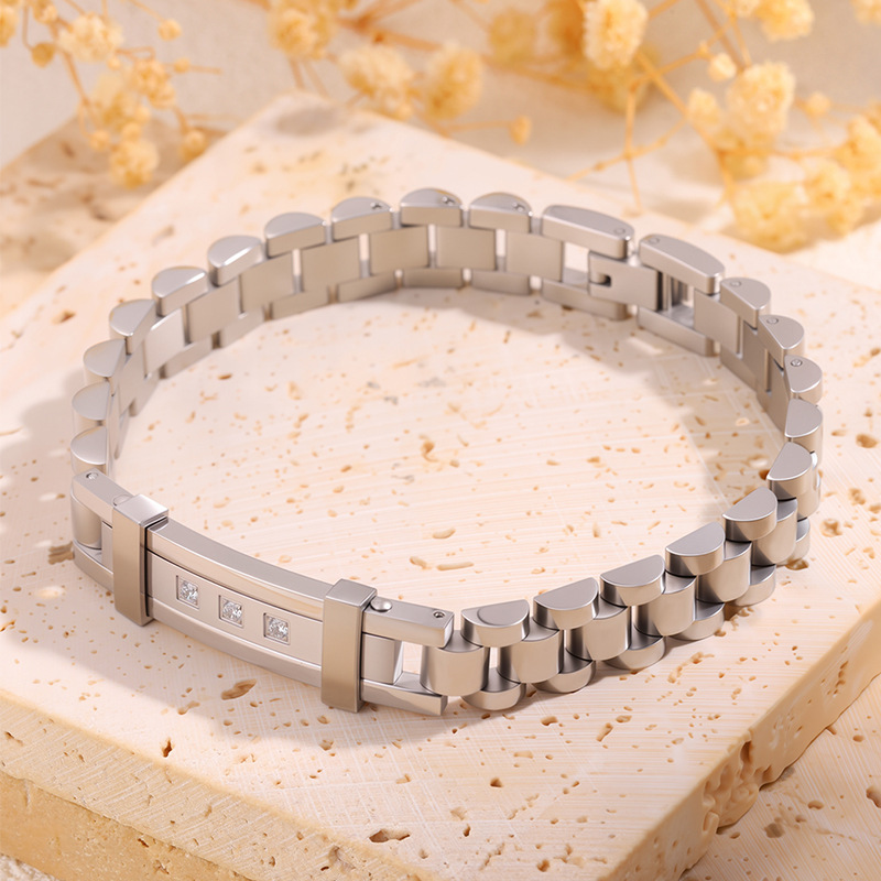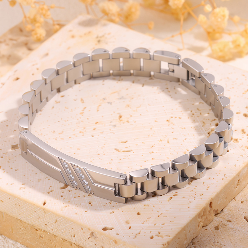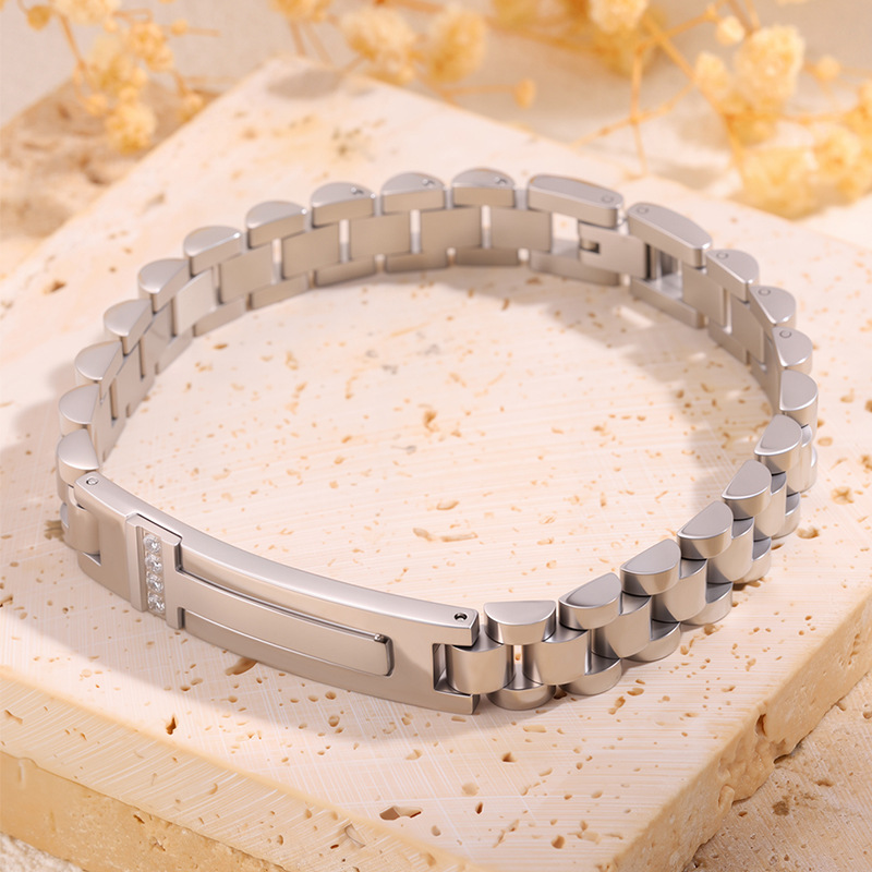 Women's Simple And Versatile Diamond Inlaid Curved Titanium Steel Bracelet