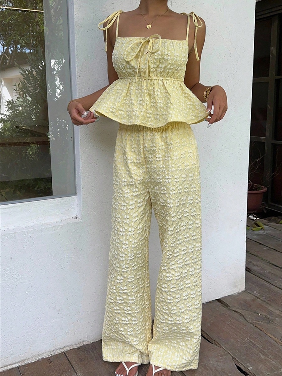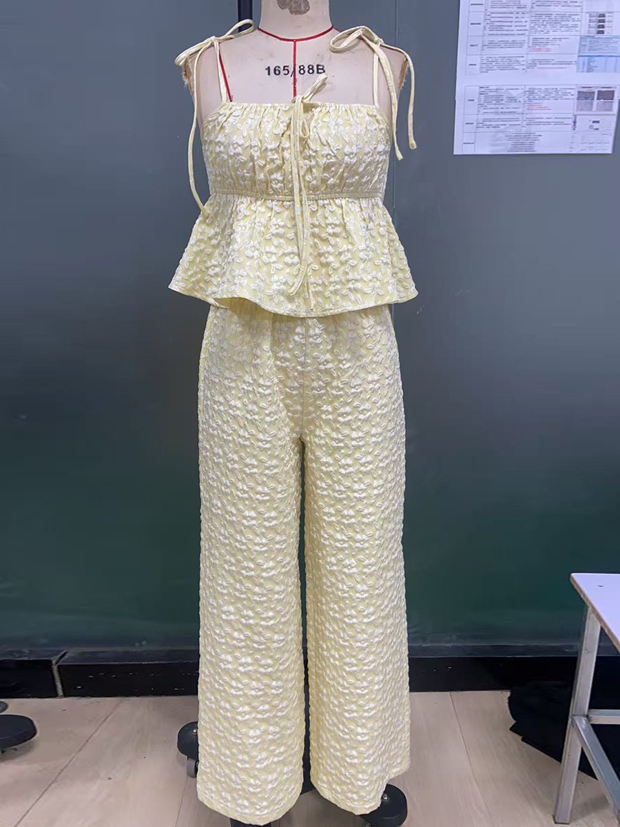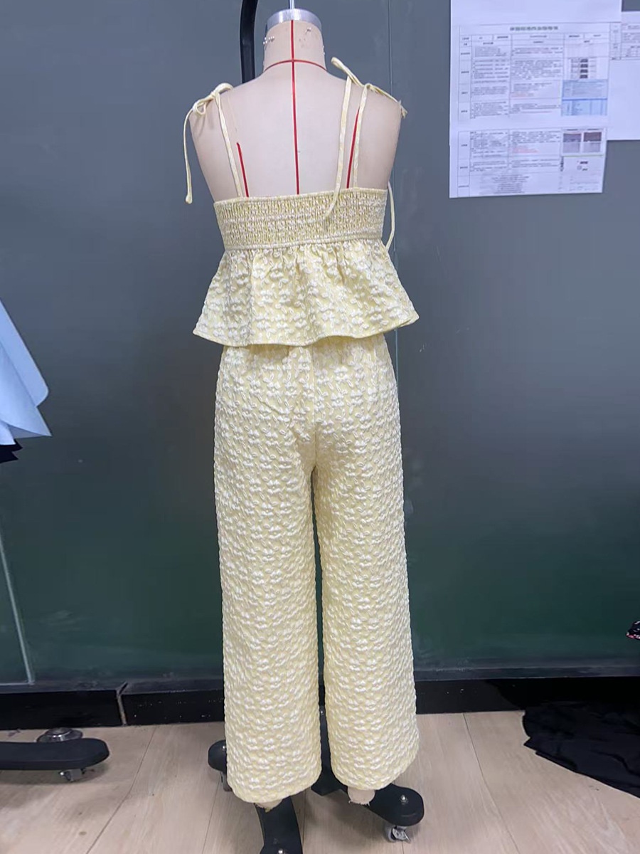 Women's Sling Top Wide-leg Straight Trousers Suit