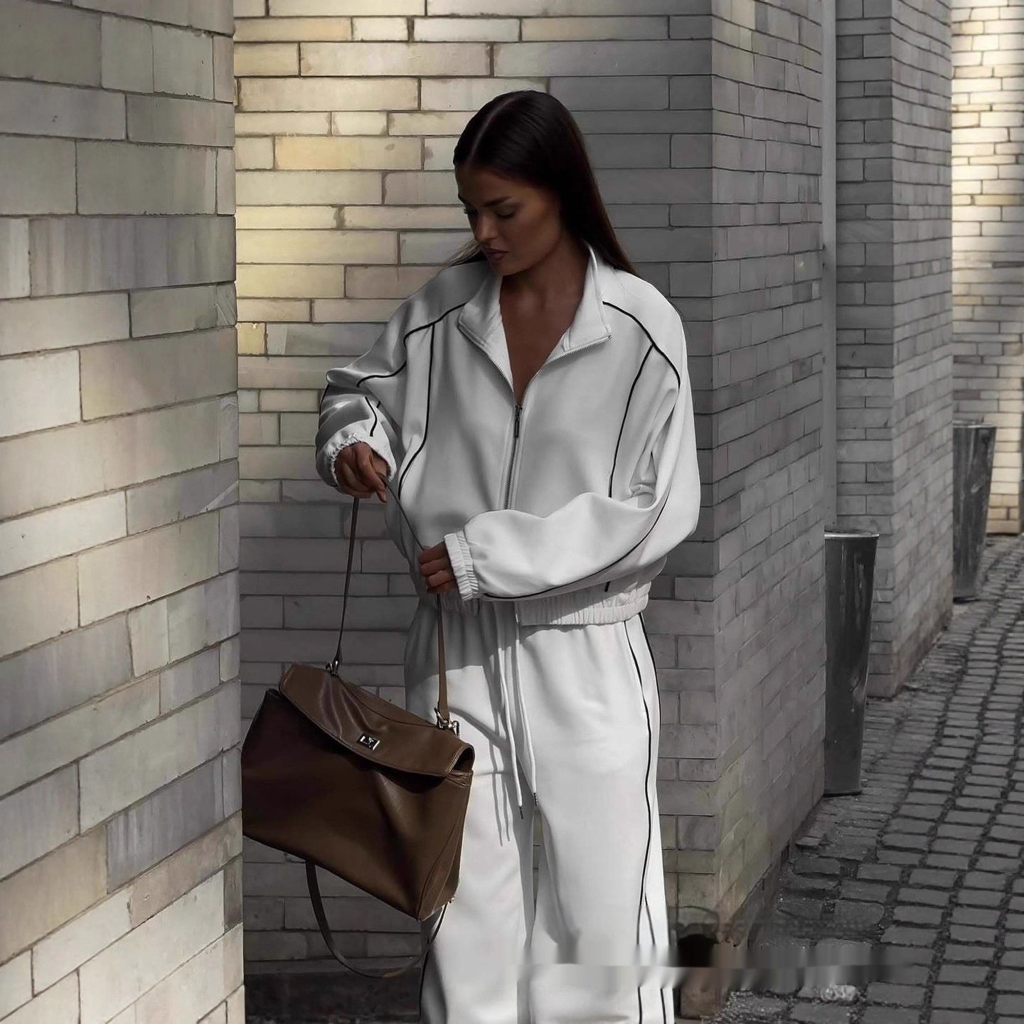 Women's Solid Color Long-sleeved Double Zipper Short Cardigan Lace-up Sports Pants