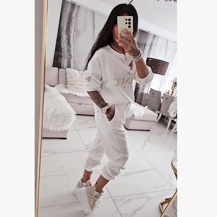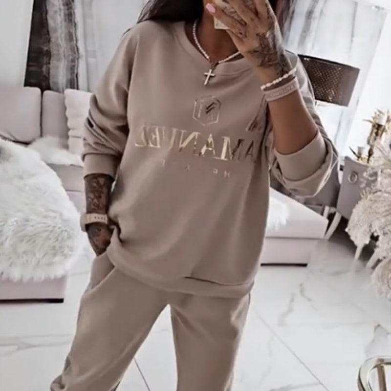 Women's Two-piece English Printing Fashion Two-piece Suit